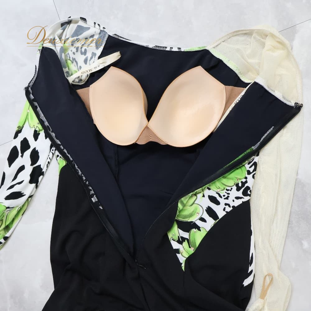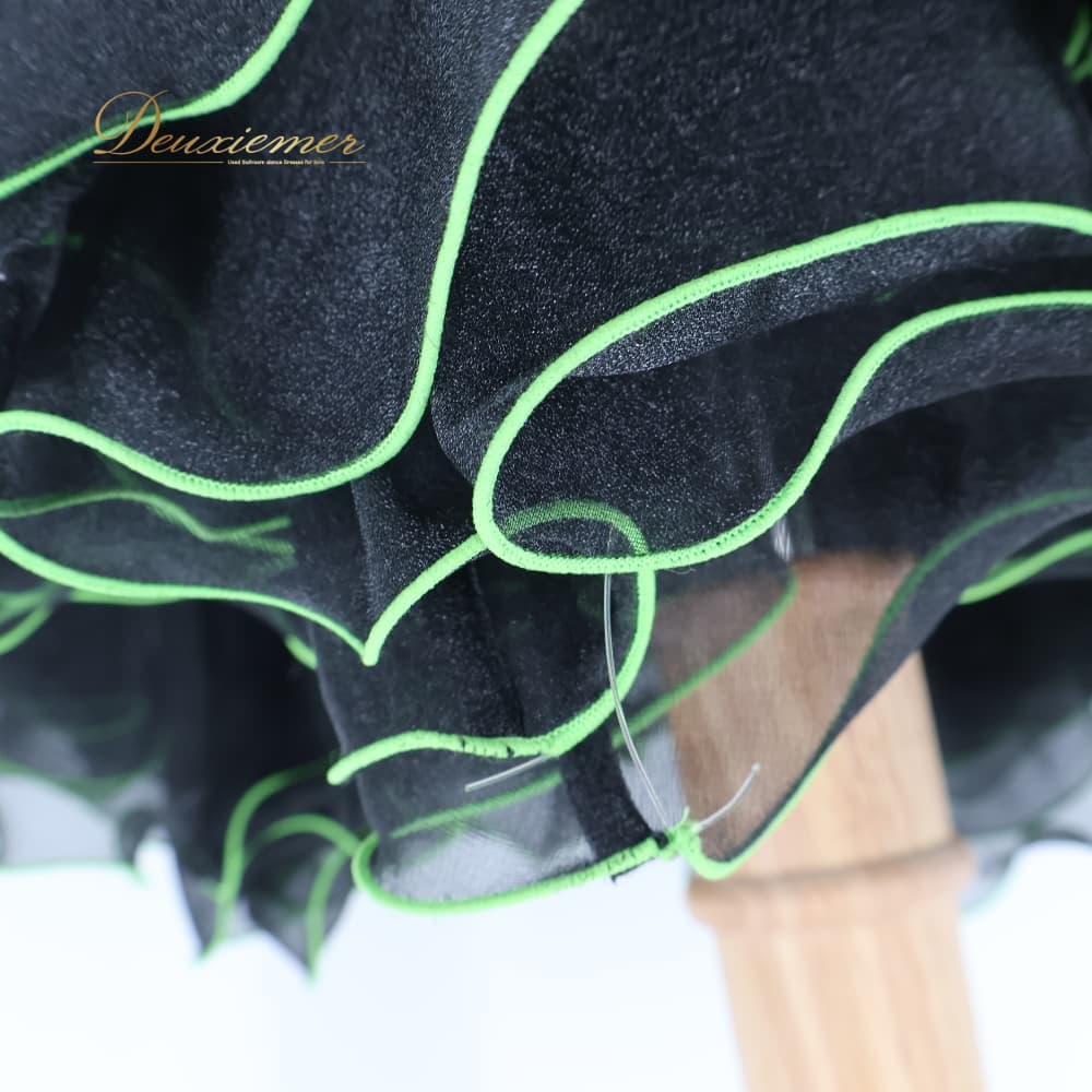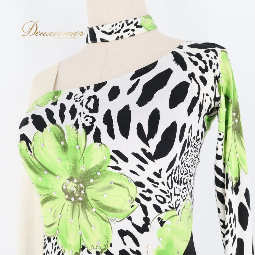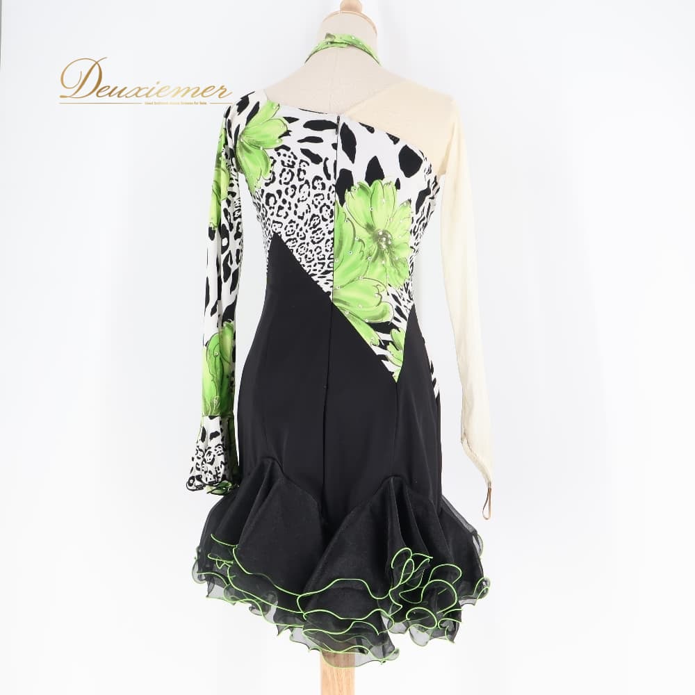 社交ダンス 衣装 in the MOOD インザムード 日本製 ドレス ワンピース ラテン ブラック系 ホワイト系 グリーン系 白 黒 黄緑 ダンス パーティ 発表会 フリル レース デモ 競技 軽い 柄 模様 上品 パーティードレス デモ用 競技用 発表会用
