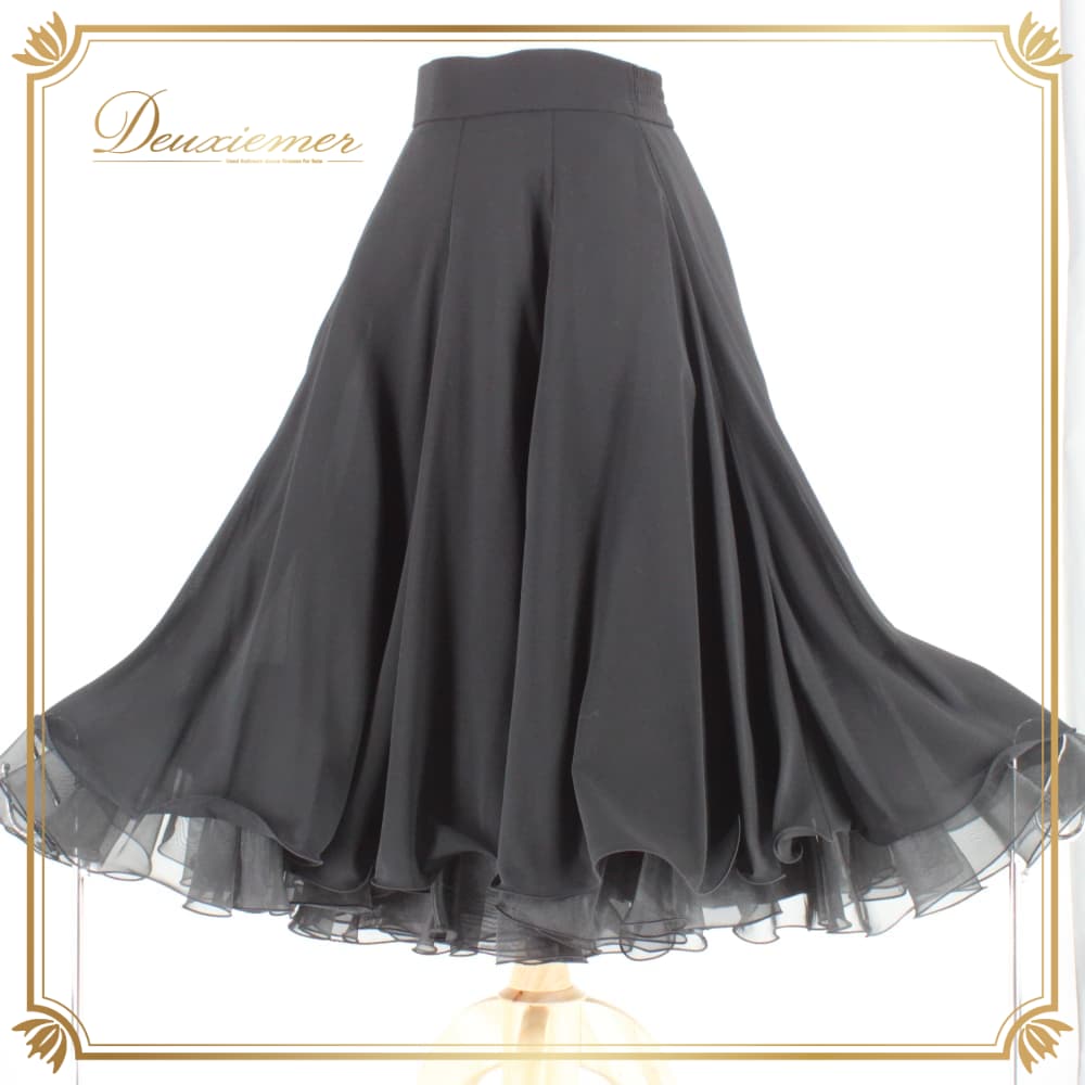 社交ダンス 衣装 Lovely Dancing スカート レッスンウェア ブラック系 黒 無地 シンプル スタンダード フォーマル 練習着 上品 レディース レディーススカート ダンス衣装 レッスン着 練習用 スタンダード用 フォーマル用 黒スカート 量感 フレアスカート フレア 上品クラシック ウエストファスナー ポリエステル レーヨン 無地フリル ダンス レディス ルンバ ワルツ タンゴ ベリーダンス風 かわいい 大人 シック ストレッチ感 エレガント コーデ