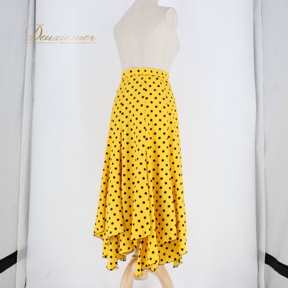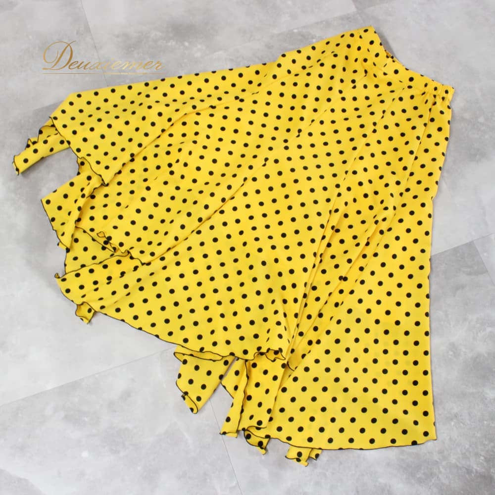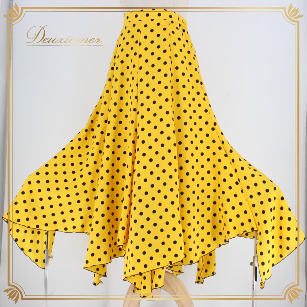 社交ダンス 衣装 Papillon パピヨン スカート レッスンウェア ブラック系 イエロー系 黄色 黒 水玉 ドット 練習着 フォーマル 社交ダンス衣装 カラフル かわいい レトロ ルーズシルエット フレアスカート ひざ丈 くるぶし丈相当 ロング 伸縮あり ポリエステル素材 ウエストファスナー ダンス練習着 練習用 スタンダード モダン パーティー用 演奏会 発表会 イベント用 ヨーロッパ風 レディース 女性用 マスタード系 ドット柄スカート