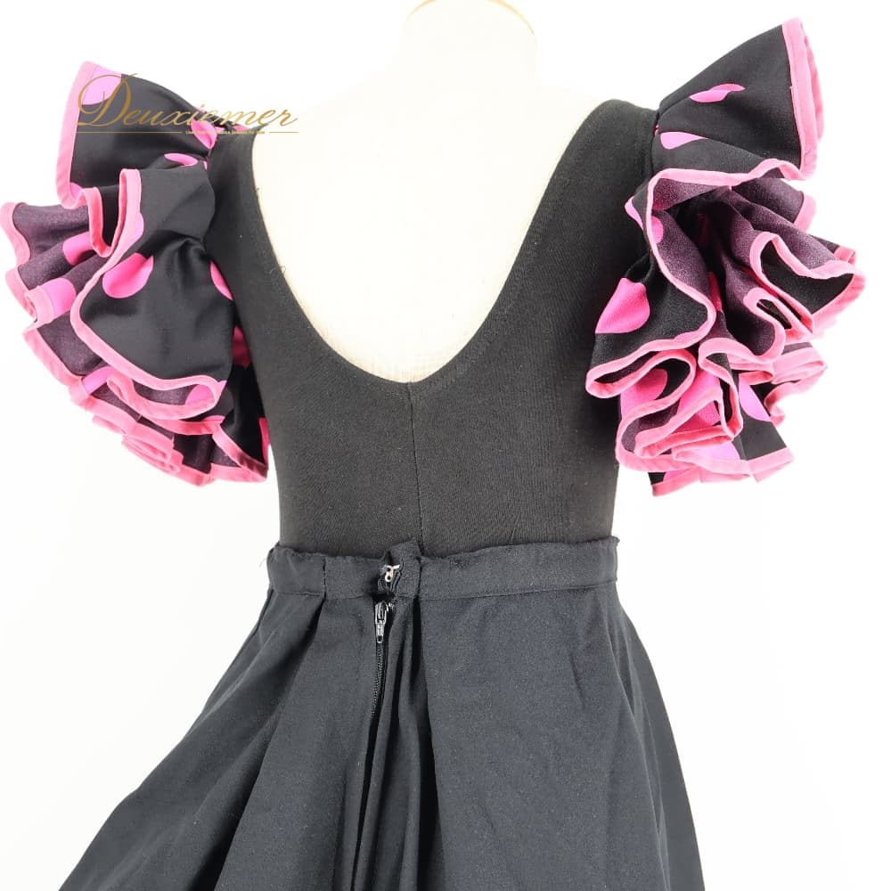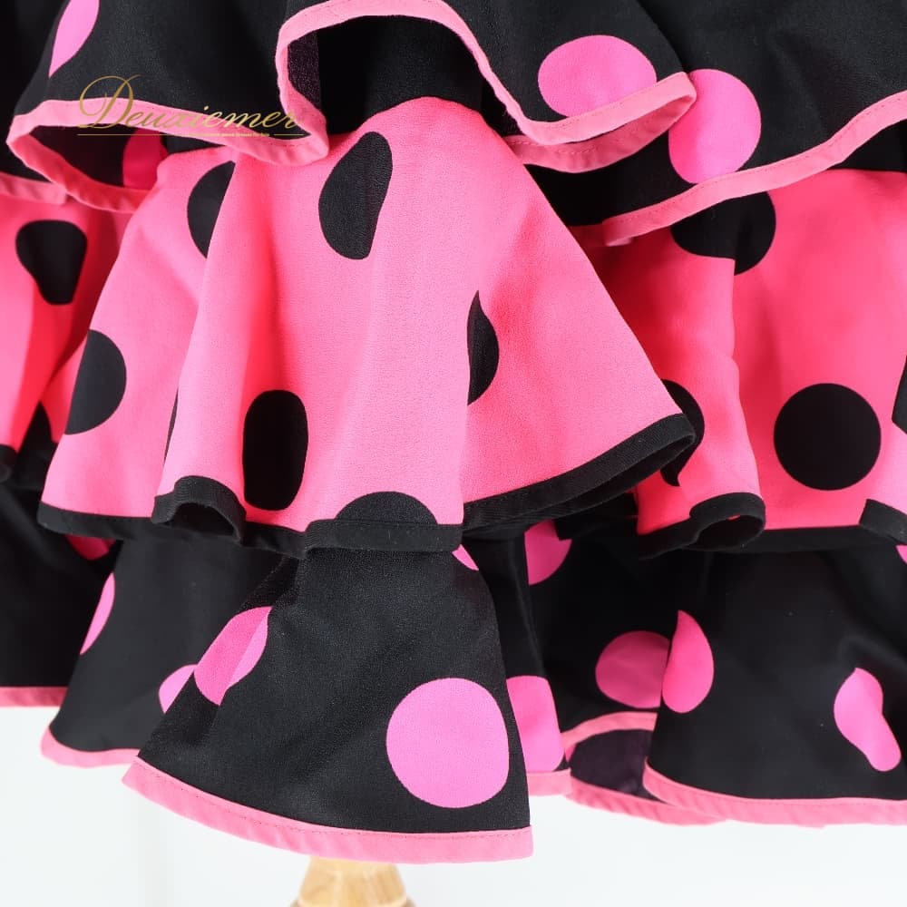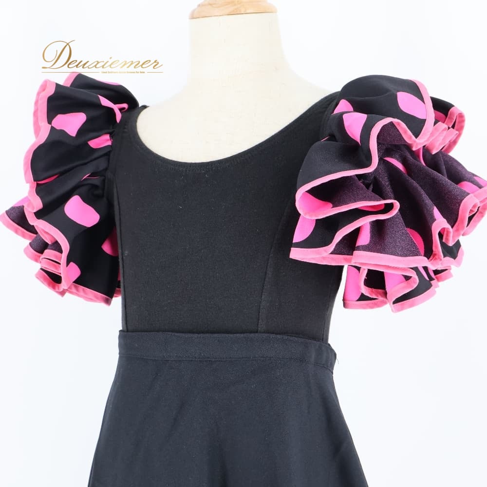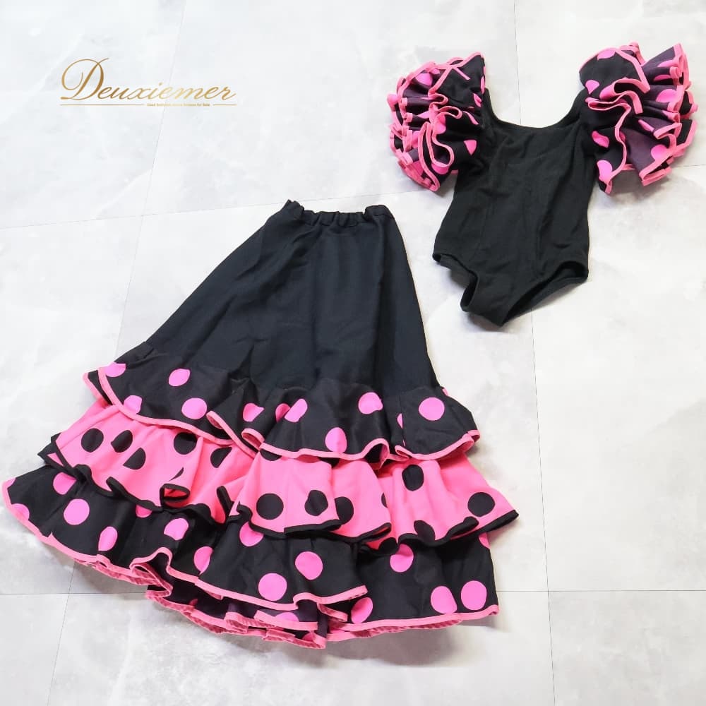 フラメンコ 衣装 ツーピース セットアップ 上下セット ブラック系 ピンク系 黒 ピンク ジュニア 子供 キッズ 水玉 ドット ボランテ フリル ファルダ スカート 子ども用 舞台用 発表会 ダンス衣装 CAPEZIO