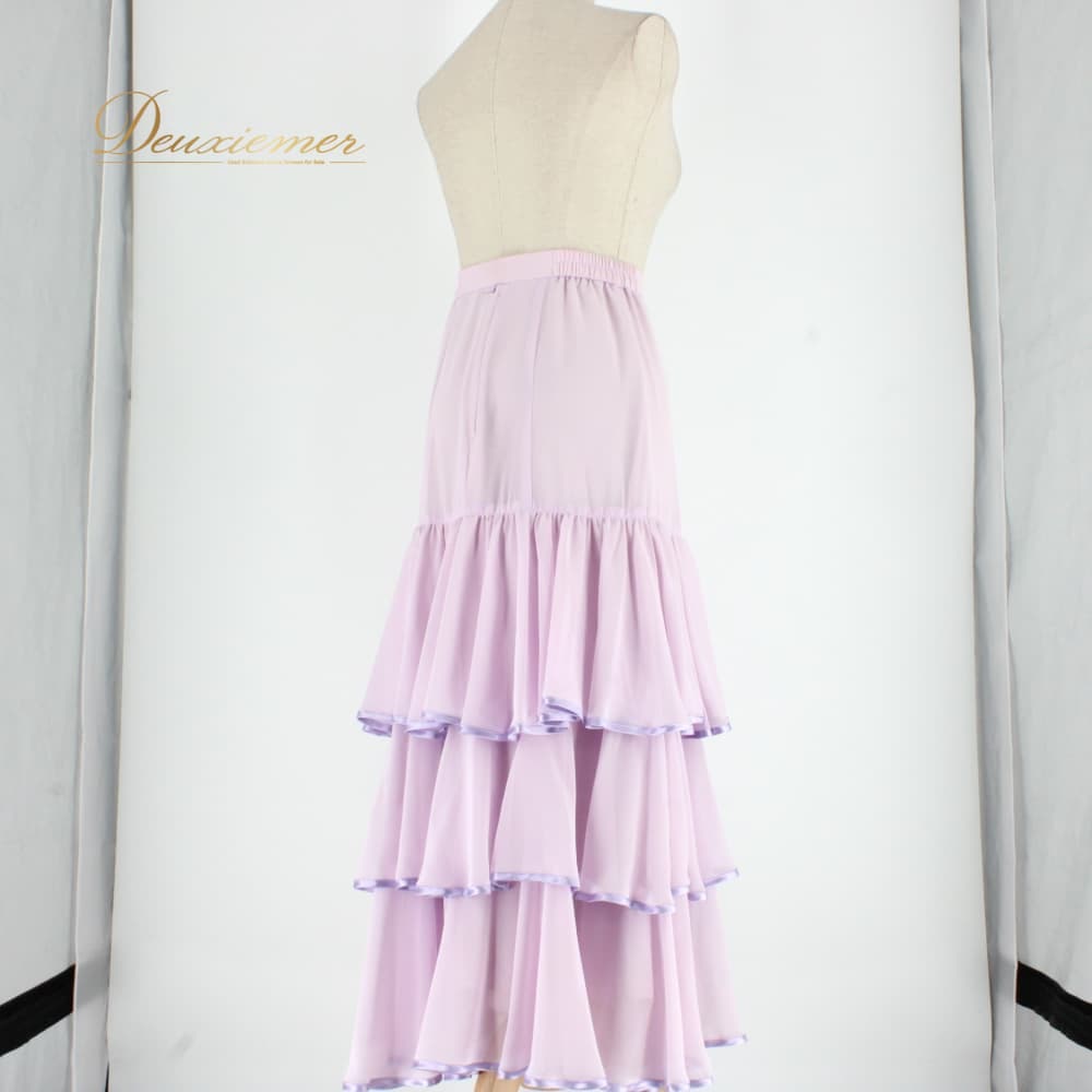 社交ダンス 衣装 Papillon パピヨン スカート レッスンウェア パープル系 練習着 薄紫 光沢感 フォーマル ステージ衣装 発表会 フェミニン ロング丈 ティアードスカート 上品 清楚 かわいい