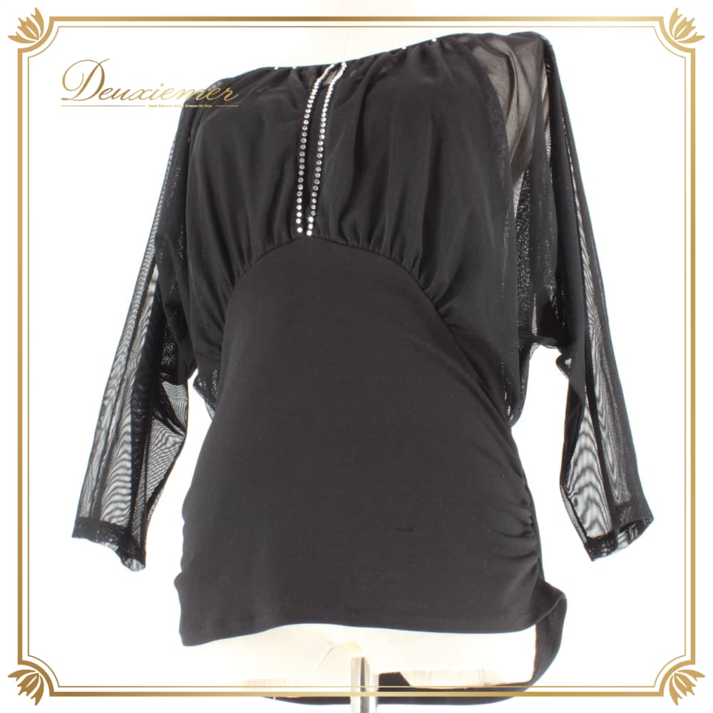 社交ダンス 衣装 create-sun クリエイトサン トップス ブラウス レッスンウェア ブラック系 黒 練習着 フォーマル ラインストーン 透け感 スタンダード シック 上品 気品 レディース 社交ダンス用 練習用 競技 スタンダード用 ダンス衣装 クラシックブラック ラインストーン飾り きらきら