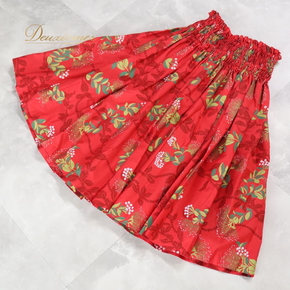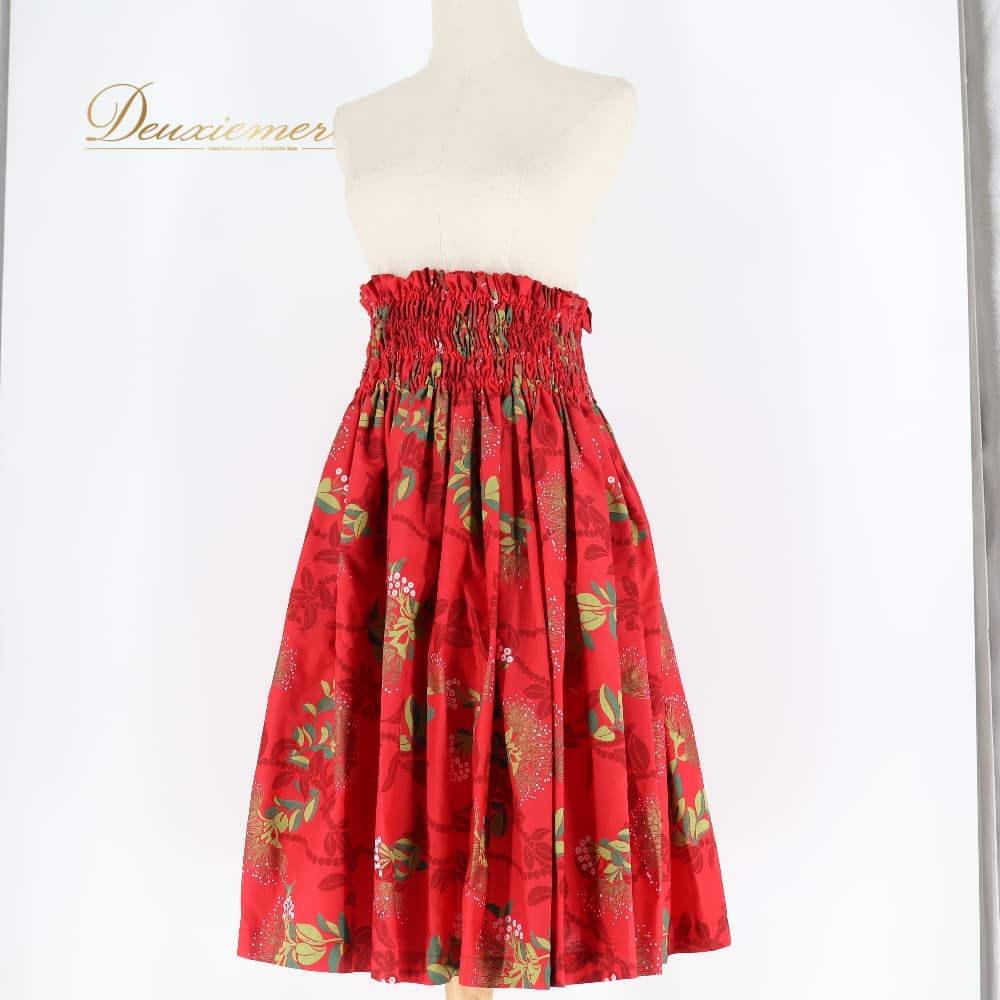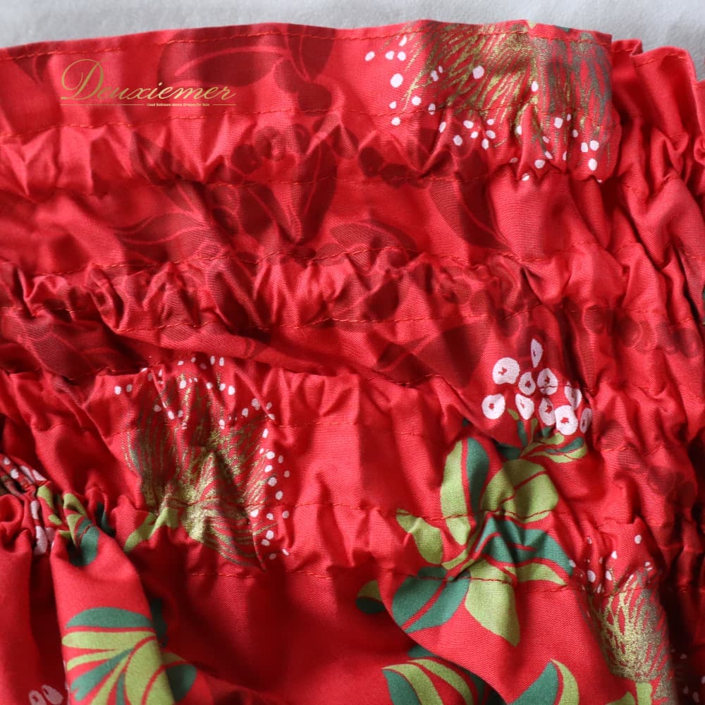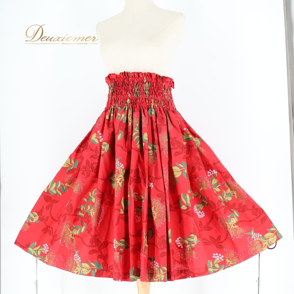 フラダンス 衣装 パウスカート レッド系 ハワイアンプリント 赤 花柄 植物柄 ハワイアン アロハ フラ ダンス レッスン 練習 華やか 鮮やか かわいい おしゃれ シングル スカート フレア 軽やか ホワイト系 グリーン系 白 緑 黄緑