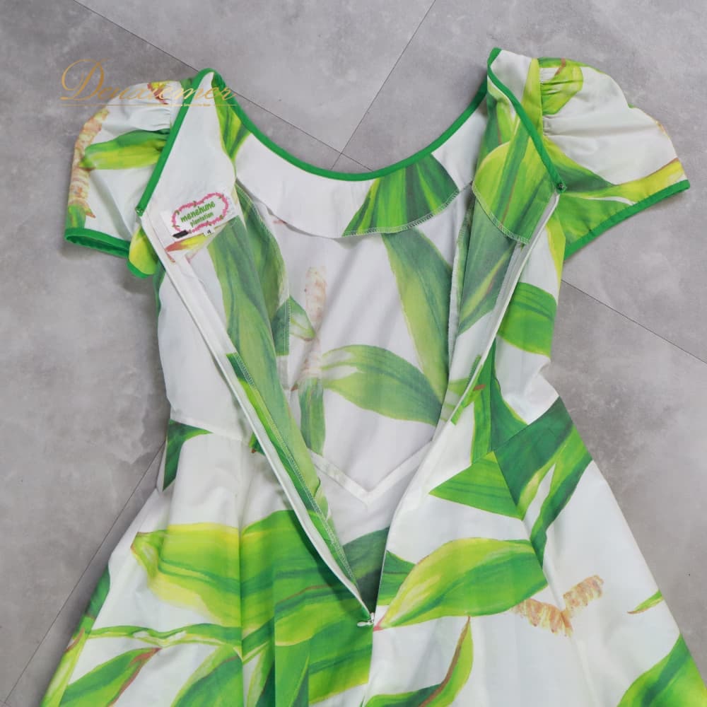 #MENEHUNE #PLANTETION #メネフネプランテーション #日本製 #フレアワンピース #植物柄 #ボタニカル柄 #花柄 #ホワイト #グリーン #イエロー #背面ファスナー #ノーストレッチ #コットン混 #ポリエステル #綿混 #レディースファッション #春コーデ #夏コーデ #ENUTSU