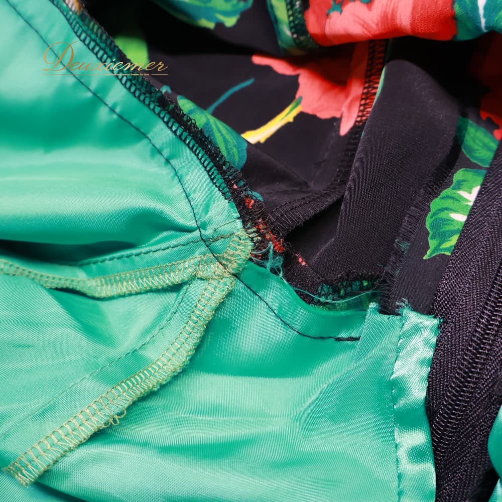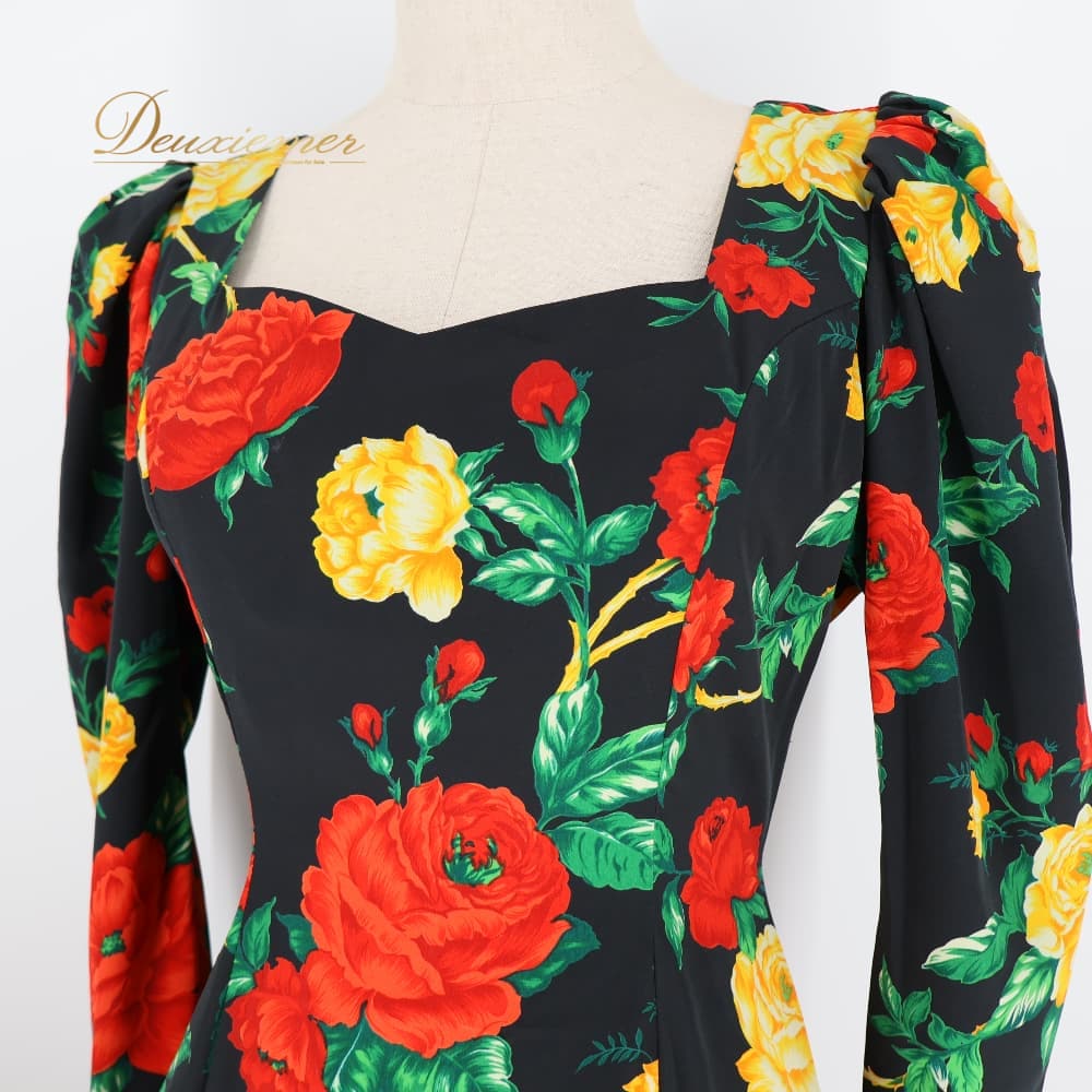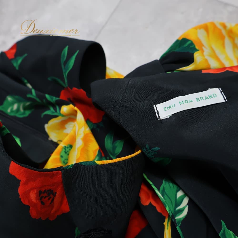 #EMU #EMUMOA #EMUモア #フラワープリント #花柄ワンピース #カラフル #カラフルデザイン #背面ファスナー #ノーストレッチ #伸縮性なし #胸パッドなし #肩パッドなし #ウエストシルエット #ガーリー #フェミニン #春コーデ #夏コーデ #レトロかわいい #大人かわいい #ENUTSU