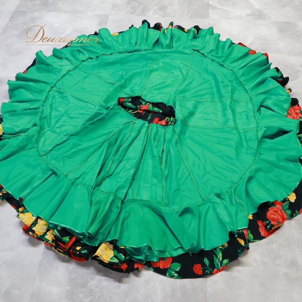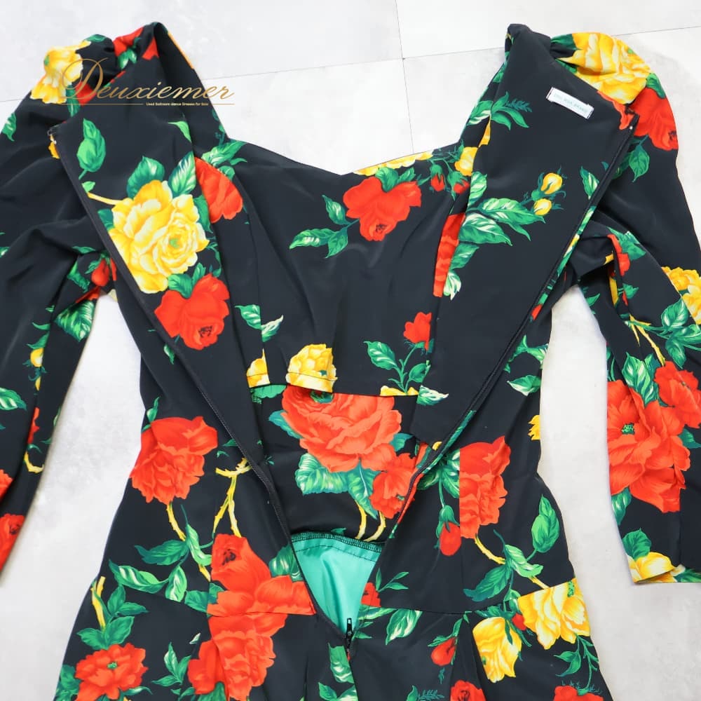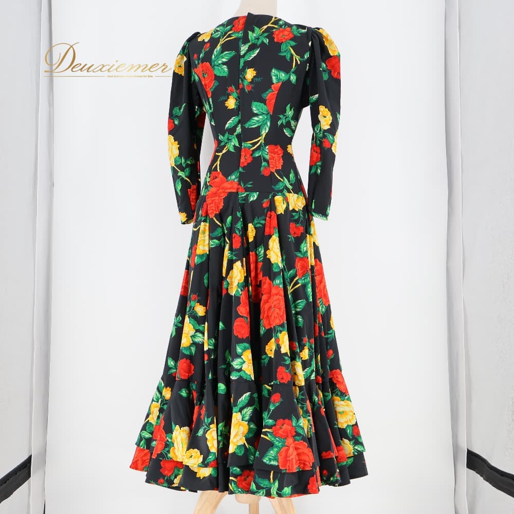 フラメンコ 衣装 EMU MOA BRAND ワンピース ドレス ブラック系 花 花柄 ボランテ フリル 黒 赤 緑 黄 華やか 長袖 ボリューム ダンス衣装 イベント ステージ かわいい 可愛い レッド系 グリーン系 イエロー系