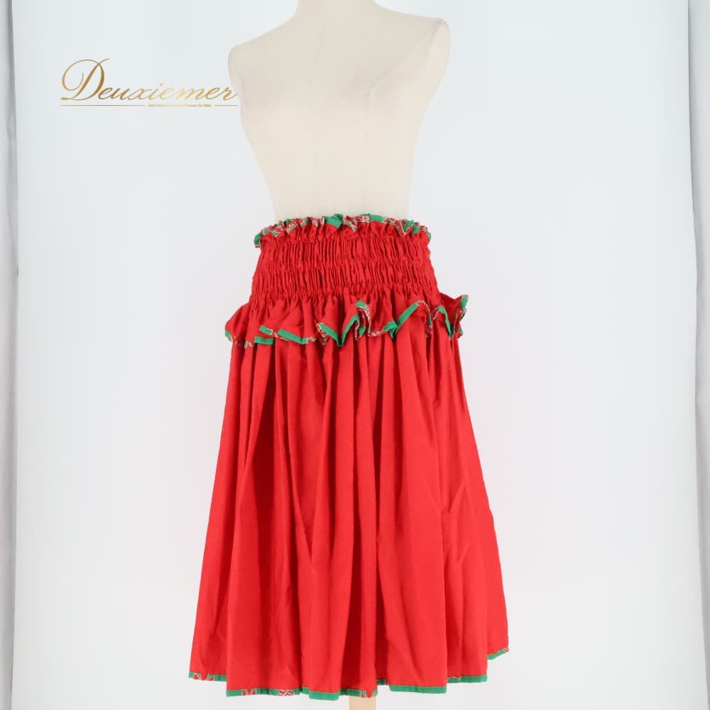 フラダンス 衣装 Anela Wink アネラウィンク パウスカート レッド系 グリーン系 ツーカラー アクセント シングル シンプル 無地 かわいい 華やか 鮮やか 明るい 赤 緑 ハワイアン アロハ ハワイアンプリント フラ ダンス レッスン 練習
