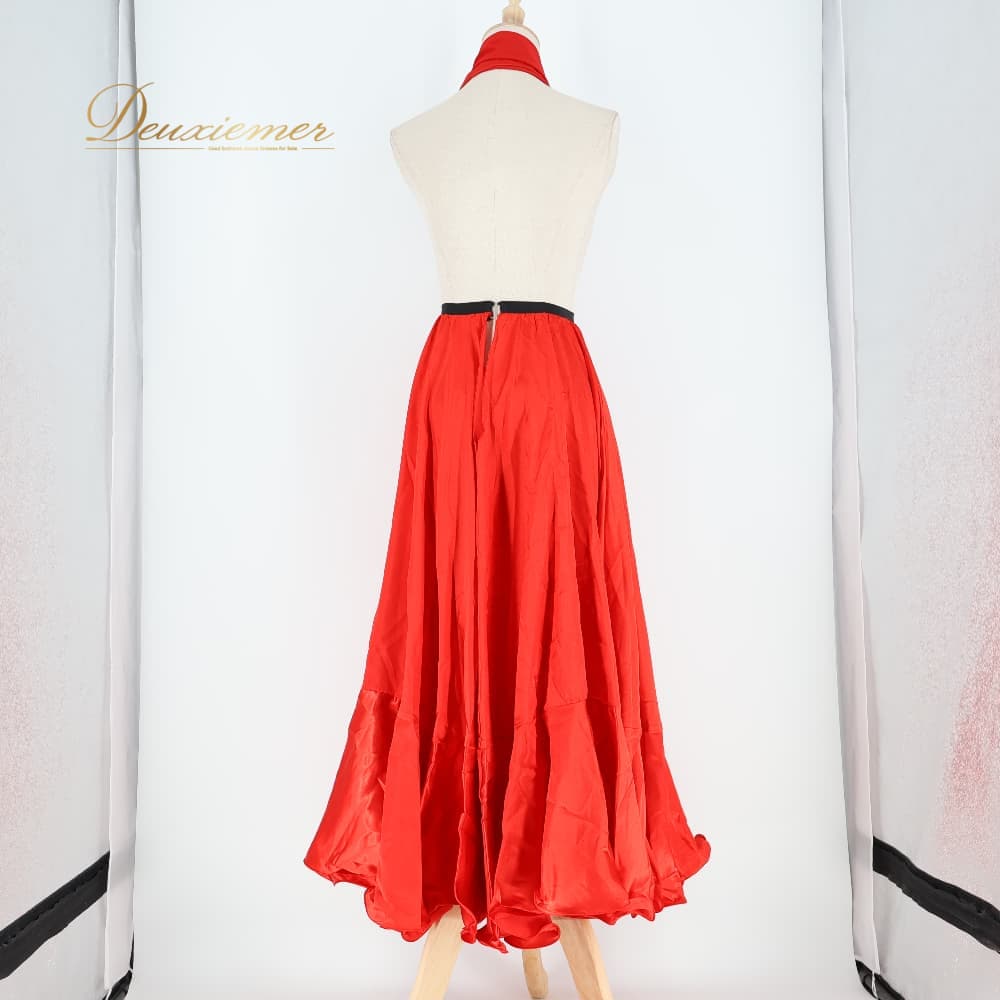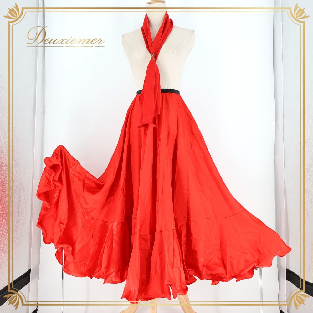 フラメンコ 衣装 prima boutique プリマブティック スカート レッド系 ファルダ ペチコート ボウタイ シージョ セット 赤 無地 シンプル 光沢 練習 レッスン 重ね着 ダンス衣装 イベント ステージ かわいい