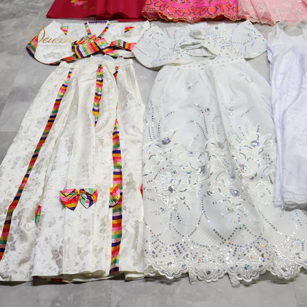 韓国伝統衣装 チマチョゴリ まとめ売り 10点以上 セット 白 紫 青 ワンピース ドレス インナー 明るい かわいい 花 無地 コスプレ 仮装 韓流 韓服 座布団カバー レディース 女性 ホワイト系 レッド系 ピンク系 ブルー系