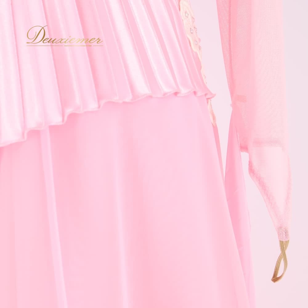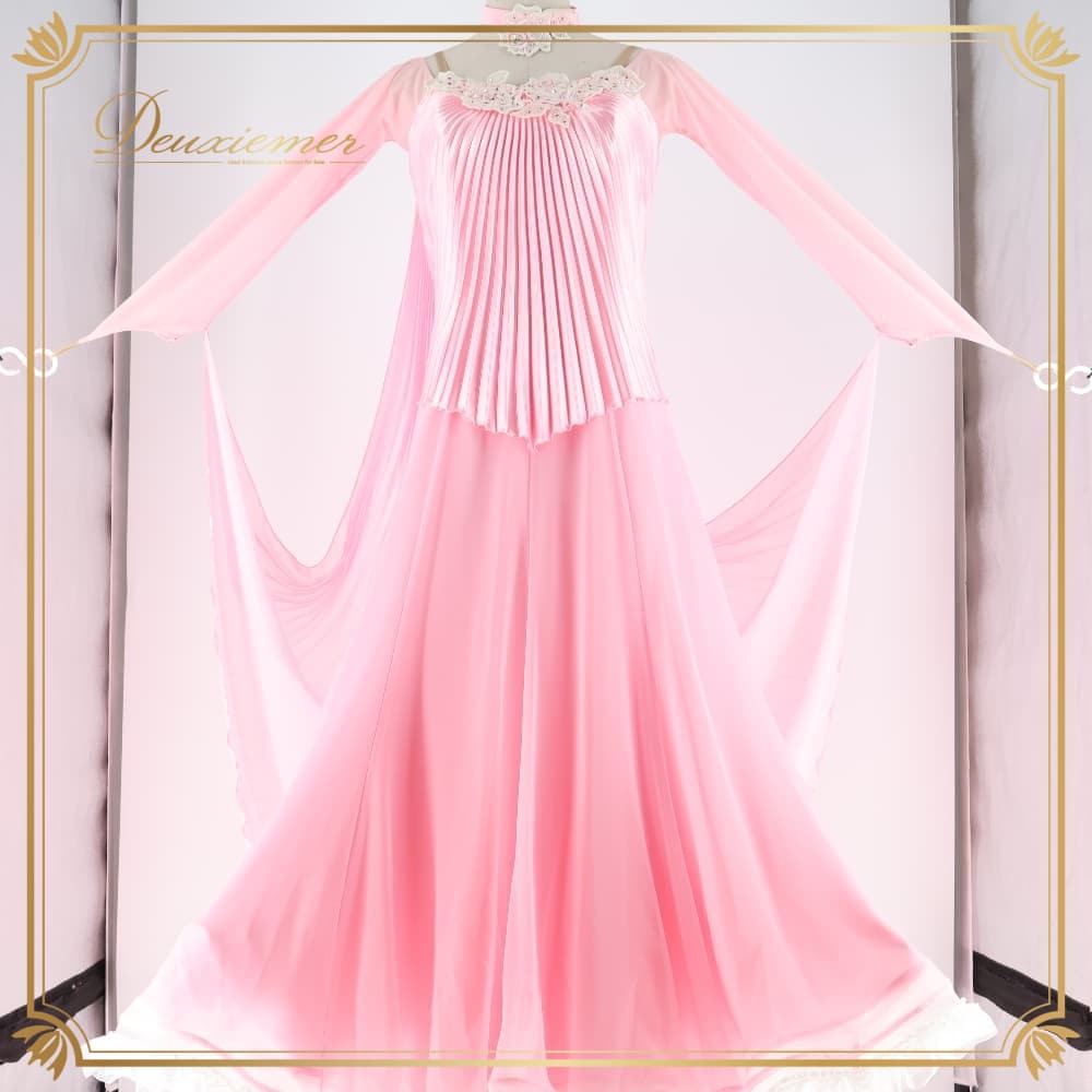社交ダンス 衣装 in the MOOD インザムード 日本製 ドレス ワンピース スタンダード ホワイト系 ピンク系 無地 プリーツ パーティ 発表会 ダンス フロート レース 明るい 綺麗 可愛い 上品 華やか 発表会用