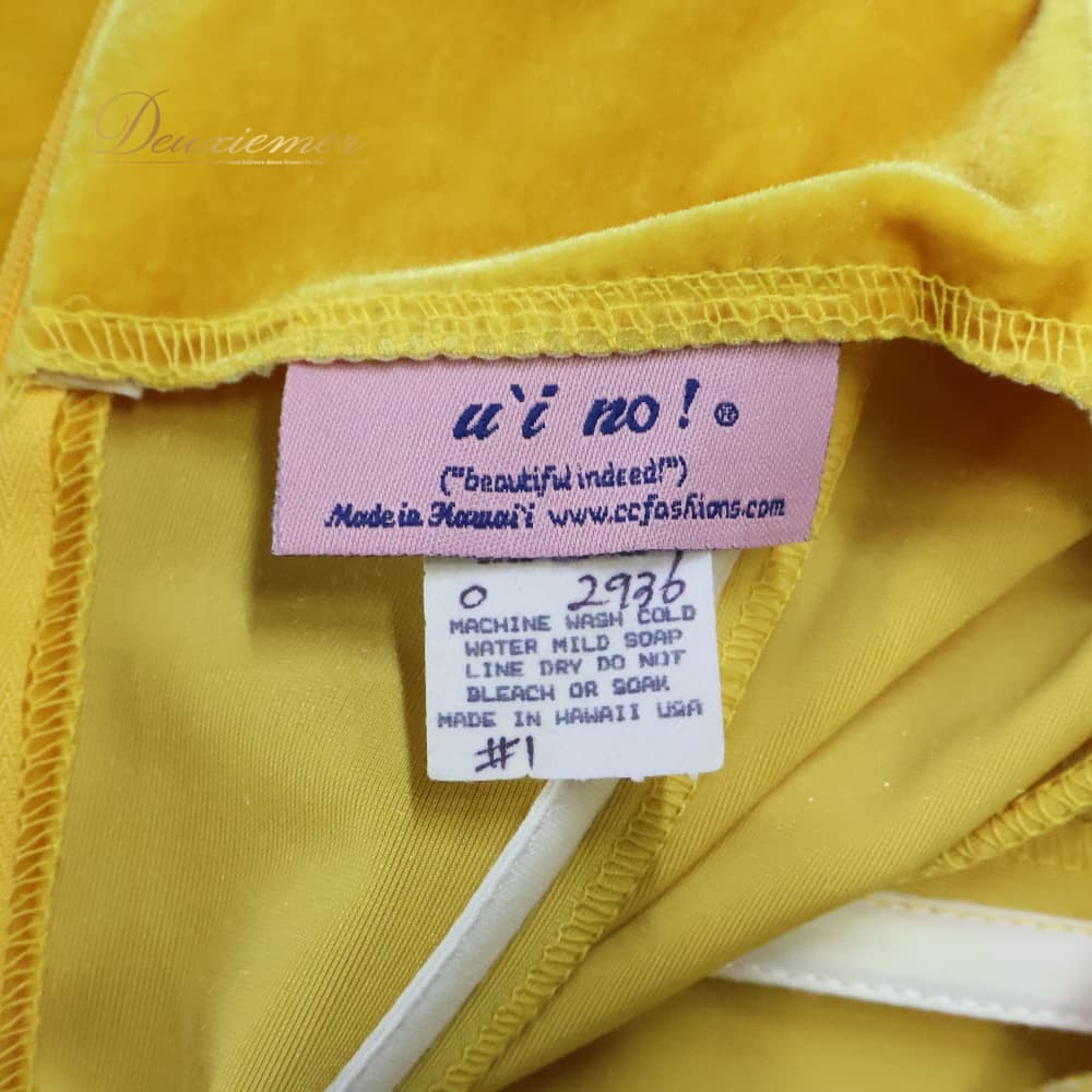 #uino #uinoハワイ #ハワイ製 #ベロア #イエロー #ふわふわスカート #ガーリー #ガールズコーデ #ワンピース #ドレス #背面ファスナー #ノーストレッチ #ワイヤー入り #ウエスト調整 #ポリエステル #スパンデックス #フォーマル #お呼ばれ #レトロかわいい #ENUTSU