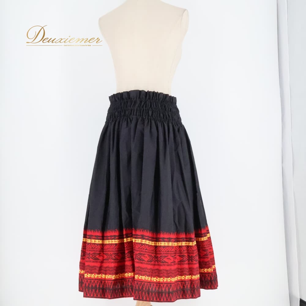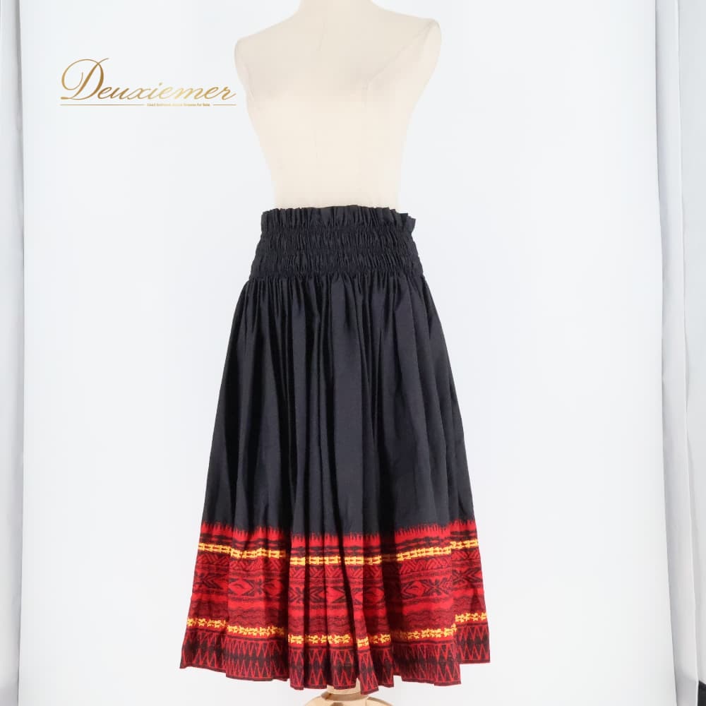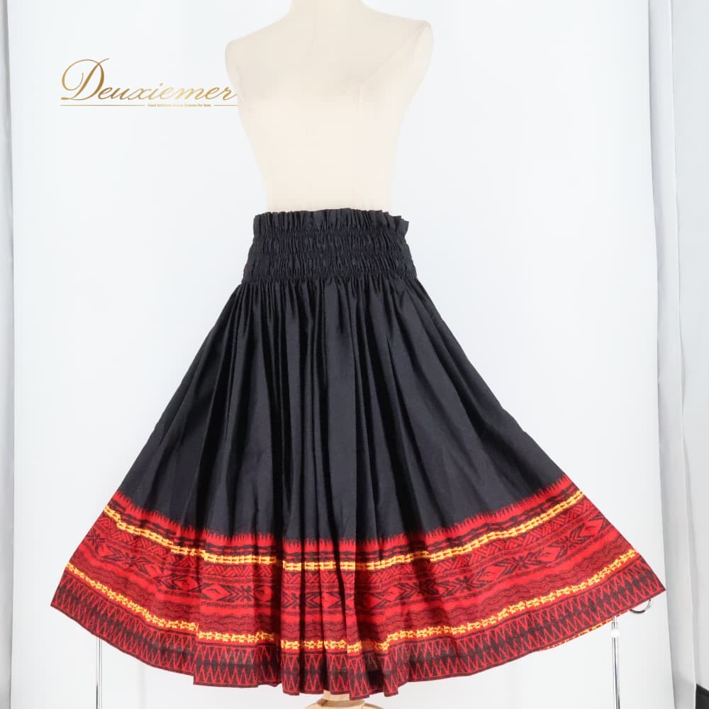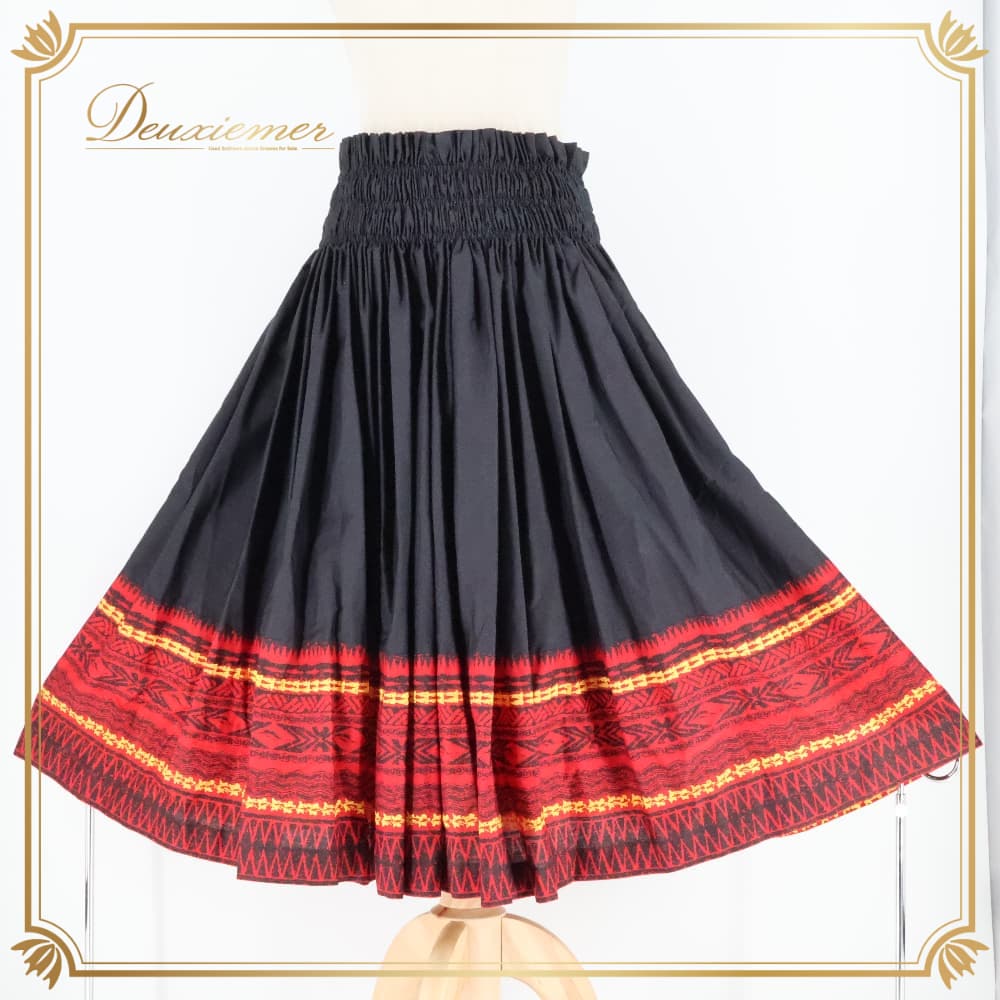 フラダンス 衣装 パウスカート ブラック系 カヒコ柄 シングル シンプル きれい 華やか 鮮やか かわいい 上品 エレガント かっこいい 黒 赤 黄 ハワイアン アロハ ハワイアンプリント フラ ダンス レッスン 練習 レッド系 イエロー系 ブラック レッド