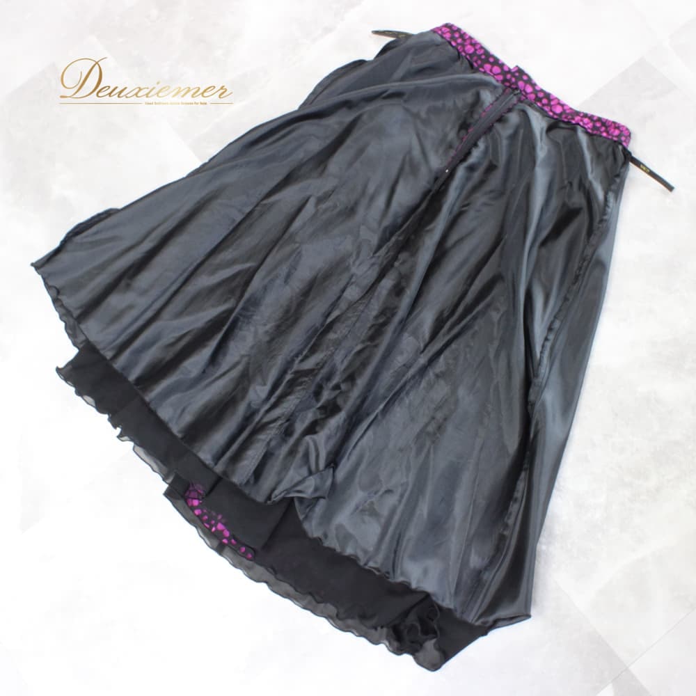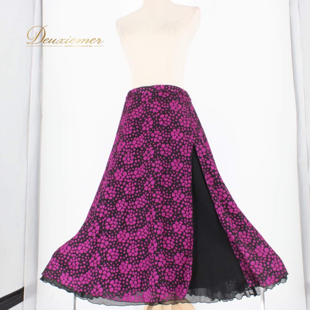 社交ダンス 衣装 U:NA ユーナ スカート レッスンウェア ブラック系 パープル系 黒 紫 バイカラー 上品 華やか エレガント レディース オールシーズン ボールルームダンス ソシアルダンス ステージ衣装 発表会 レディース社交ダンス レッスン用スカート レディス 社交ダンスボトムス ボールルーム フレアスカート Aライン風 くすみカラー 柄スカート 派手すぎない 体型カバー きれいめ しっとり ダンス発表会衣装 ダンスコーデ ブラックパープル系 紫黒系 Lサイズ レーヨン ポリエステル