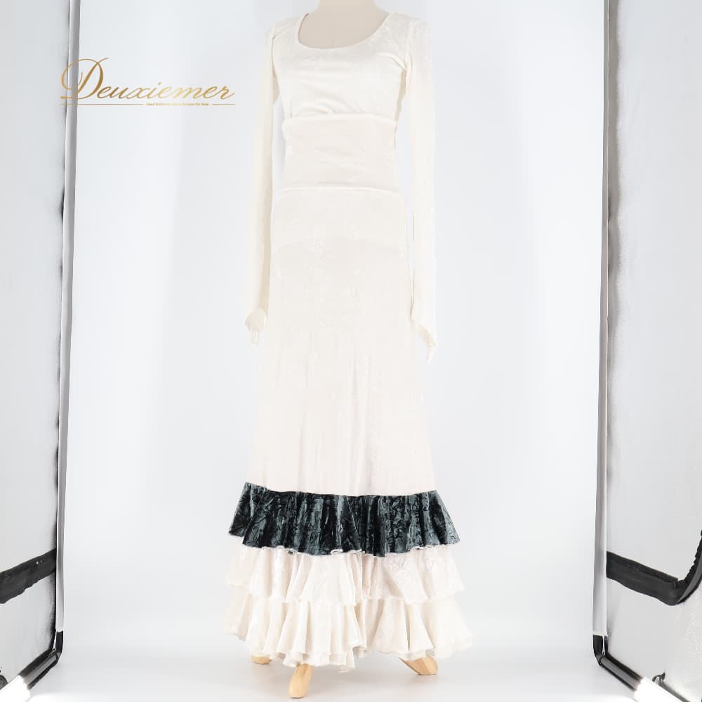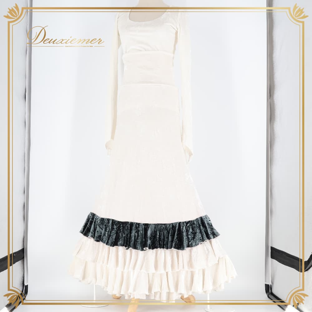 フラメンコ 衣装 o collection ツーピース セットアップ 上下セット ホワイト系 グレイ系 グリーン系 白 黒 グレー 緑 トップス ブラウス ファルダ スカート 無地 ハイウエスト ベロア 高級感 上品 舞台衣装 発表会 ステージ かわいい 大人 可愛い レディース