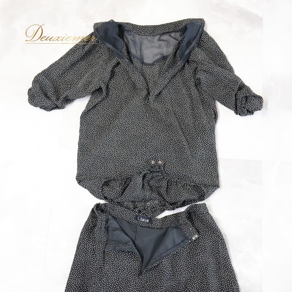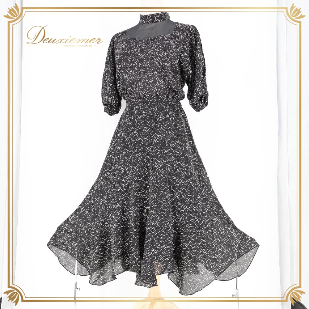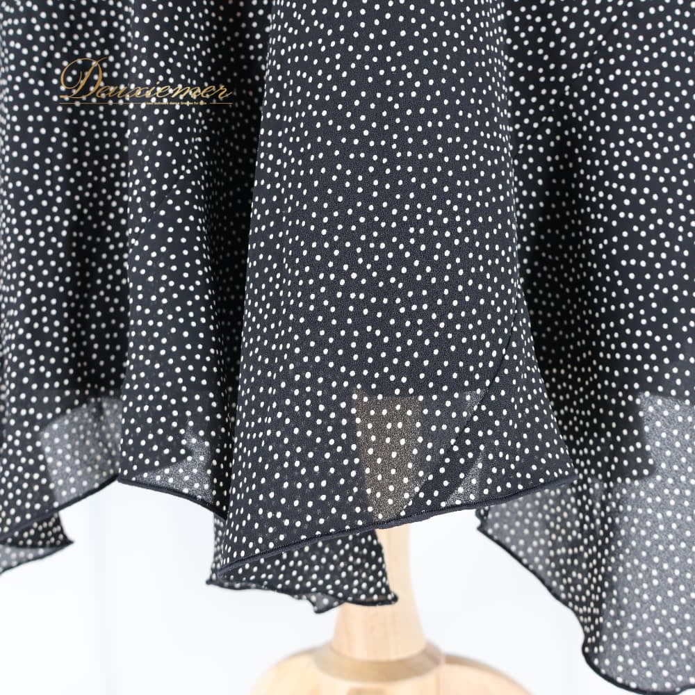社交ダンス 衣装 Chacott チャコット ツーピース ブラック系 水玉 ドット 黒 白 上下セット セットアップ トップス レオタード スカート ふんわり 練習 レッスン ダンス衣装 イベント 日本製 ステージ パーティー ドット柄 ホワイト系