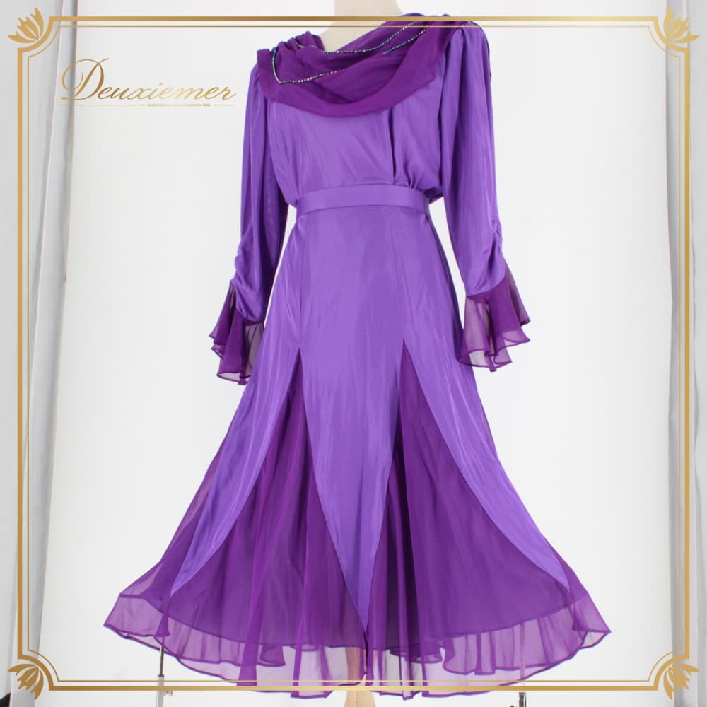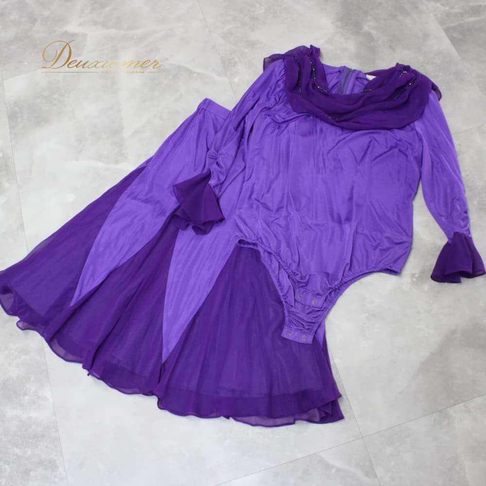 社交ダンス 衣装 Eve by TAKEMI イヴバイタケミ ツーピース スタンダード パープル系 紫 セットアップ 上下セット トップス スカート ダンスパーティー ステージ衣装 発表会 レディース オールシーズン ボールルームダンス ソシアルダンス バイオレット系 ダンスドレス セット セット売り スタンダード用 衣装一式 ボールルームダンス用 レディース衣装 フォーマルダンス ドレススタイル ステージ映え 光沢なし フェミニン きれいめ おしゃれ 大人っぽい 上品 パープル ラメ調 アクセント