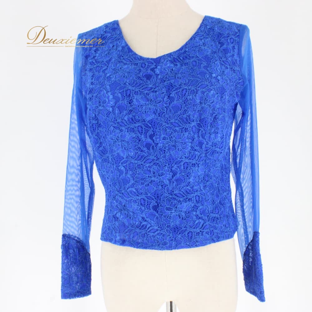 社交ダンス 衣装 Papillon パピヨン トップス ブラウス レッスンウェア ブルー系 青 レース 長袖 花柄 スタンダード 練習着 上品 華やか エレガント レディース オールシーズン ボールルームダンス ソシアルダンス