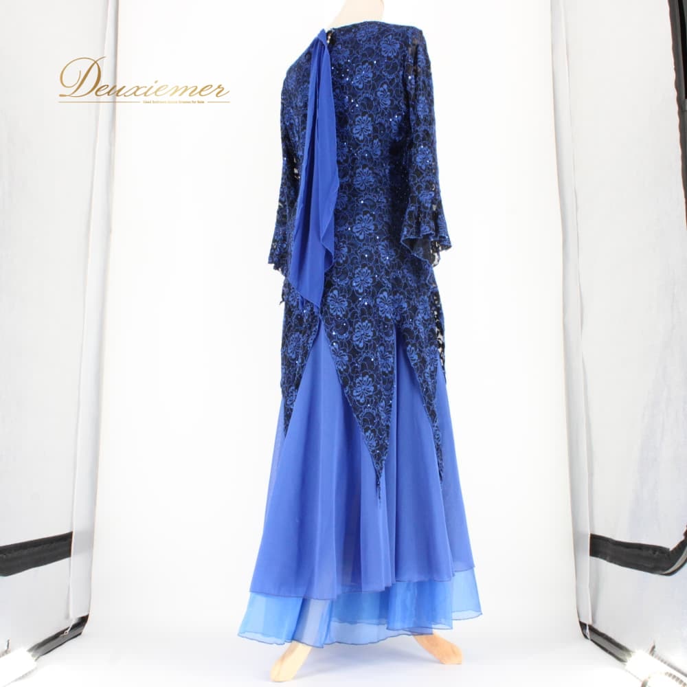 社交ダンス 衣装 ドレス ワンピース スタンダード ブルー系 黒 青 花柄 レース ラインストーン ダンスパーティー パーティドレス スタンダードドレス ステージ衣装 発表会 レディース オールシーズン ボールルームダンス ソシアルダンス ブラック系 ミッドナイトブルー系 ロイヤルブルー系 黒系 青系 花柄プリント レースワンピース ラインストーン装飾 スパンコール風 装飾レース ロング丈 7分袖 長袖 シフォン風 フレアスカート ダンスドレス ボールルーム ソシアル ウエスト切替 すそ広がり
