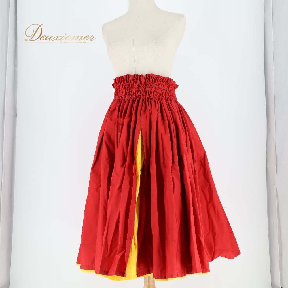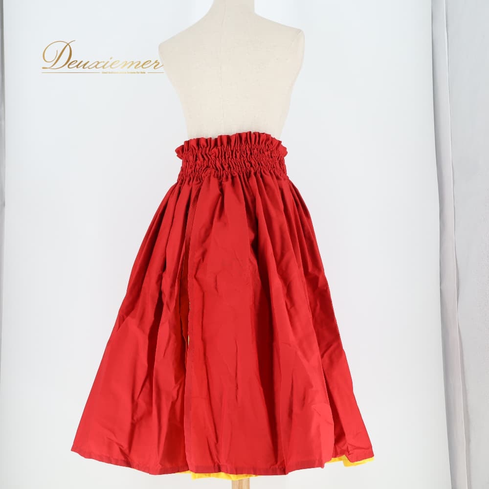 フラダンス 衣装 パウスカート レッド系 無地 シンプル 赤 黄 イエロー系 ハワイアン アロハ フラ ダンス レッスン 練習 ダブル スカート 華やか 鮮やか かわいい おしゃれ ボリューミー ふんわり 明るい レッスンウェア 練習着 フラダンス衣装