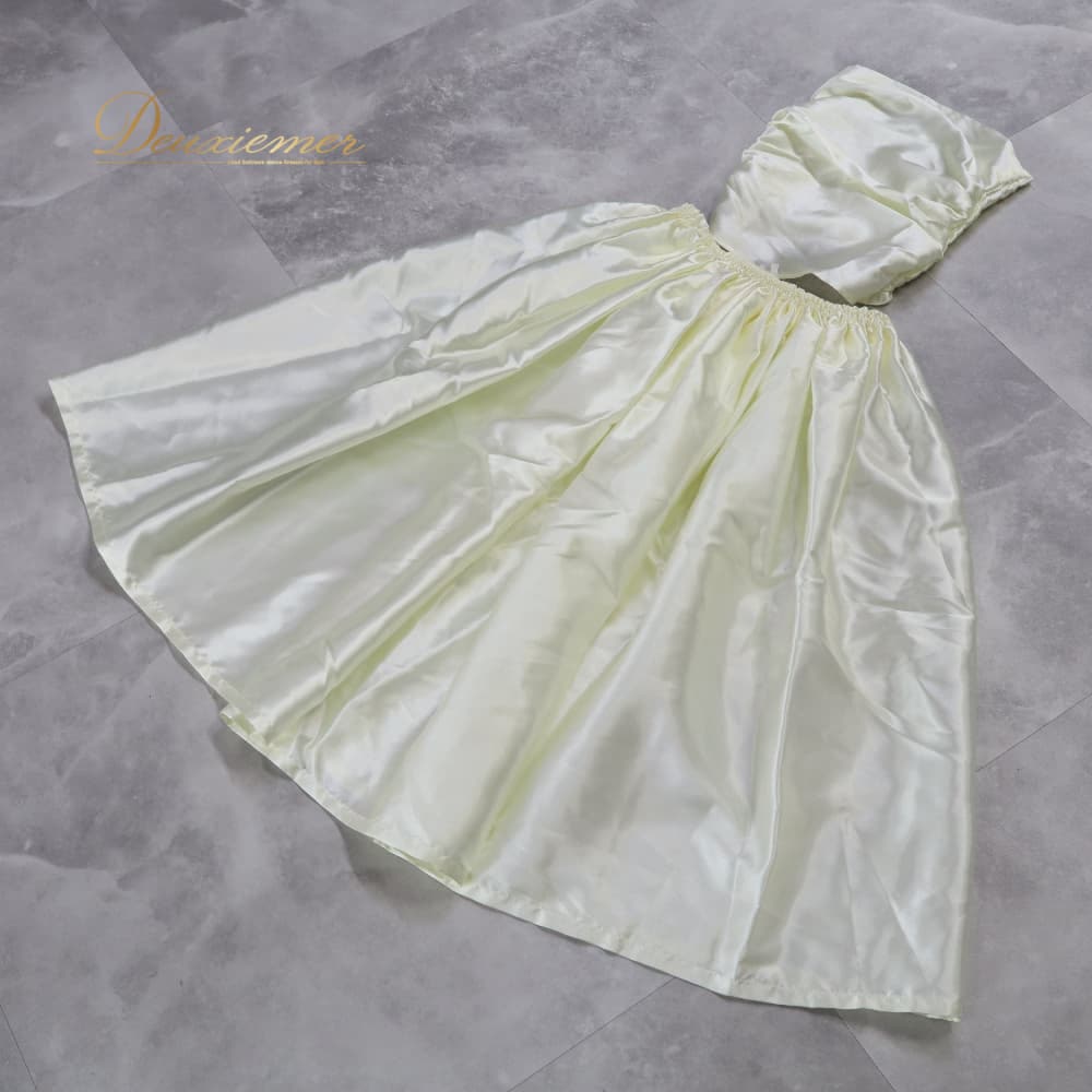 フラダンス 衣装 ツーピース セットアップ 上下セット イエロー系 ホワイト系 オフホワイト レモンイエロー 無地 サテン生地 光沢感 高級感 華やか 上品 かわいい おしゃれ 大人っぽい ハワイアン アロハ フラ ダンス レッスン 練習 着回し フレアスカート 2点セット サテン 光沢 ホワイト ミルキー系 チューブトップ風 ハワイ衣装 アロハドレス 練習用 衣装用 レッスンウェア 発表会 きれいめ フォーマル カジュアル兼用 ダンスコスチューム オフショルダー風 オールシーズン ふんわり ボリューム