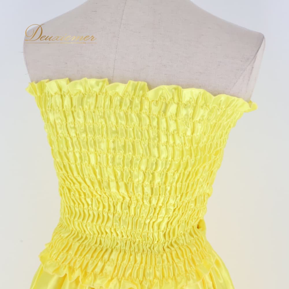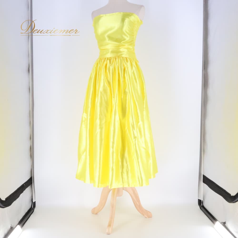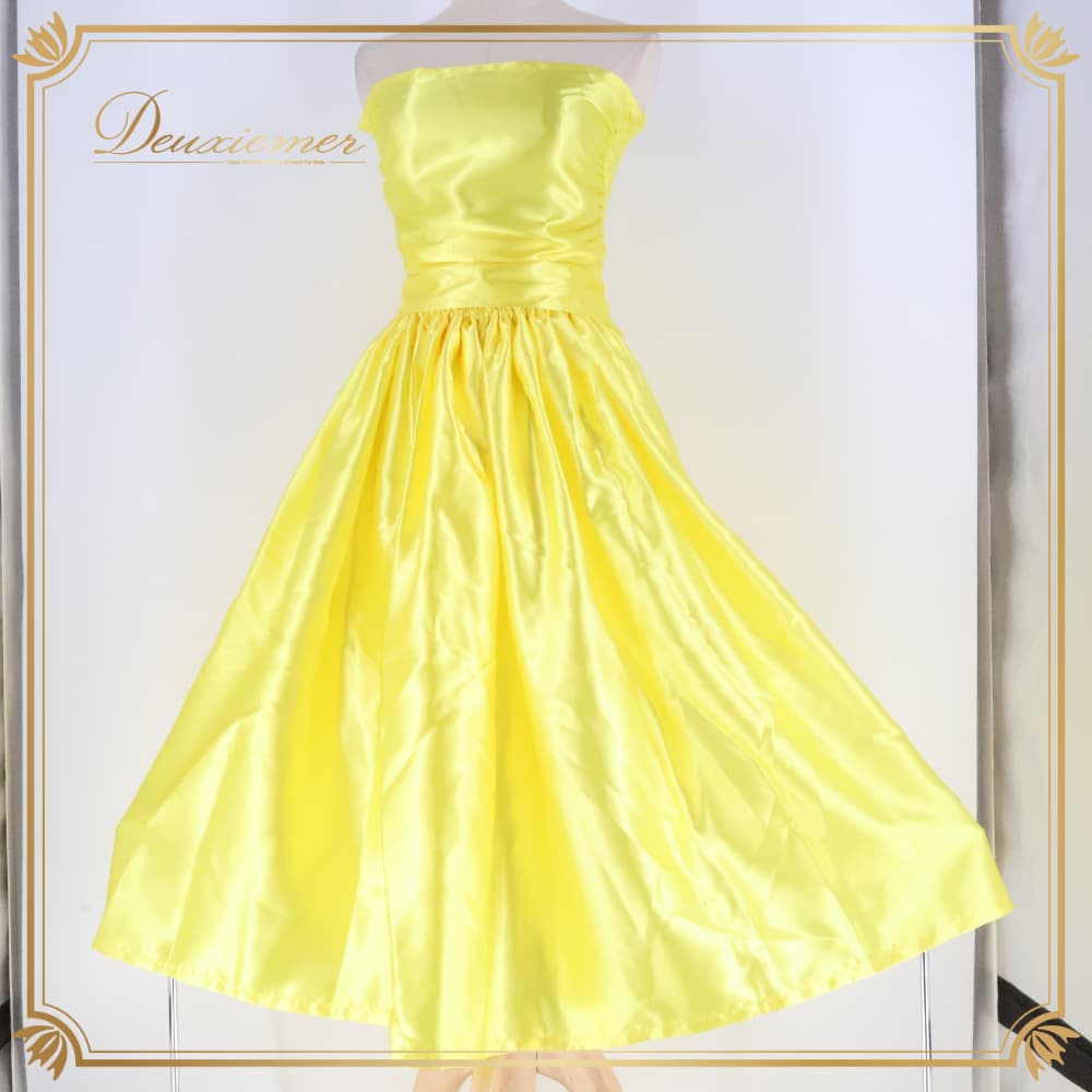 フラダンス 衣装 ツーピース 上下セット セットアップ イエロー系 ワンカラー チューブトップ 無地 光沢感 かわいい 華やか 鮮やか 明るい きれい 上品 黄 ハワイアン アロハ フラ ダンス レッスン 練習 イエロー ドレス風 ワンピース風 2点セット