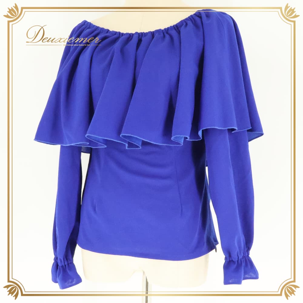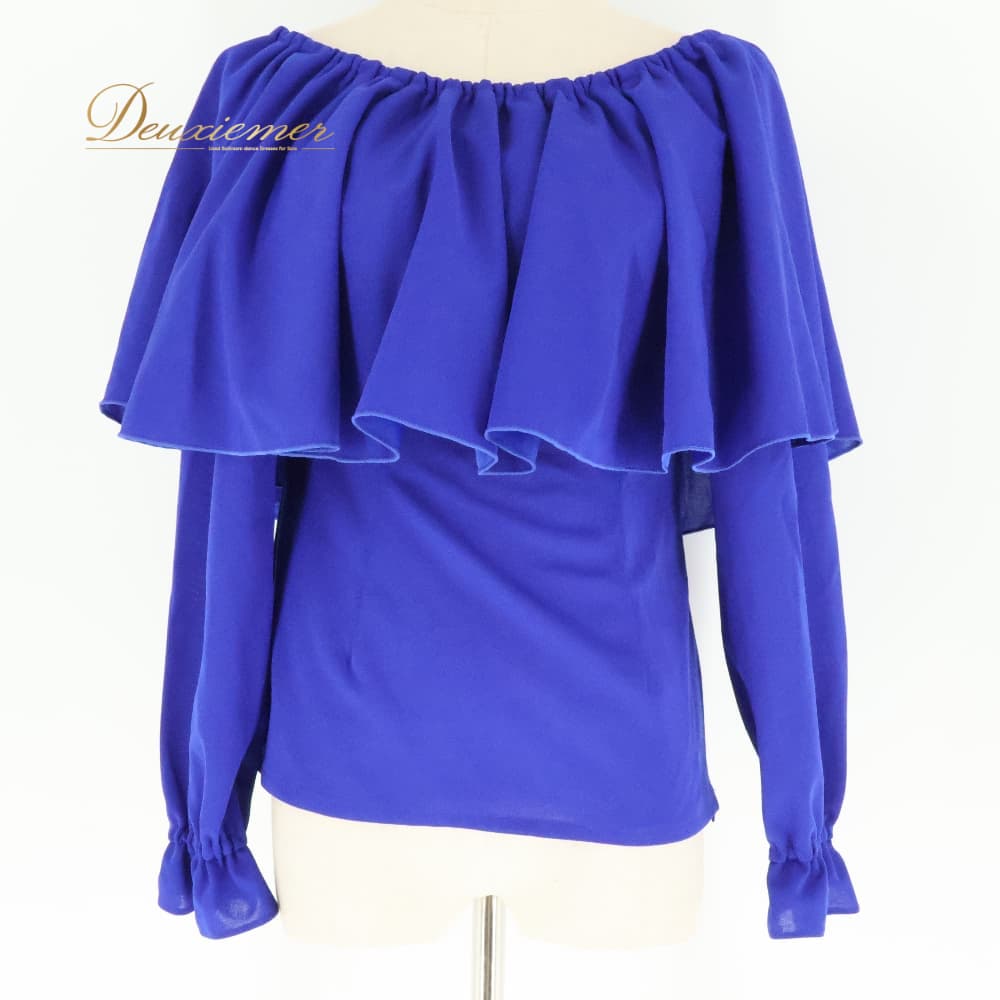フラダンス 衣装 Maunaloa マウナロア トップス ブラウス ブルー系 ワンカラー 無地 シンプル かわいい 華やか 鮮やか 明るい 爽やか 上品 きれい 大人っぽい 青 ハワイアン アロハ フラ ダンス レッスン 練習 ひらひら 長袖 オフショル風