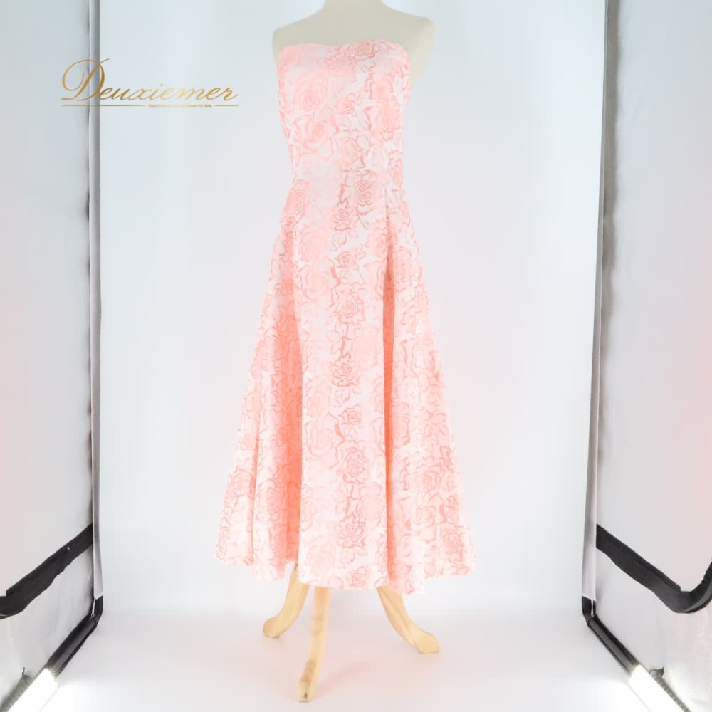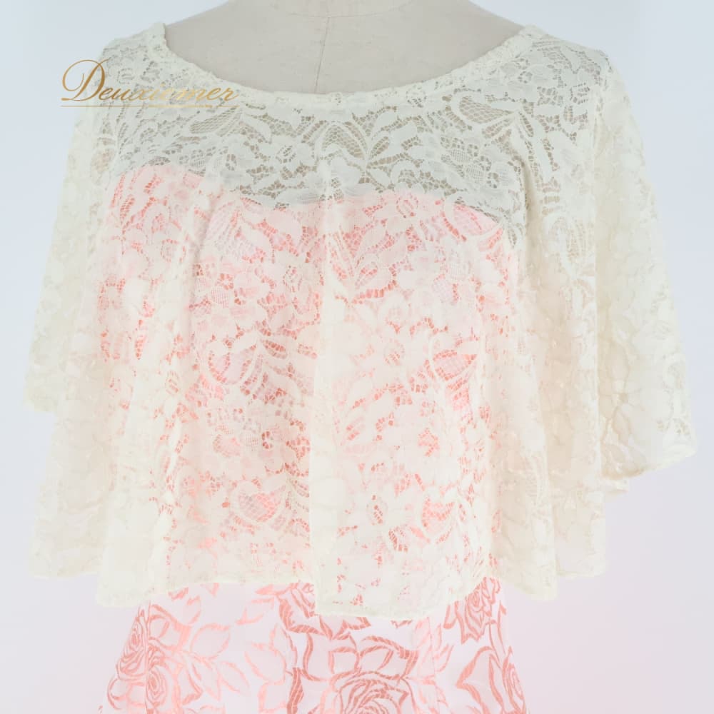 フラダンス 衣装 ワンピース ドレス ホワイト系 ピンク系 2WAY レース チューブトップ バラ柄 刺繍 透け感 かわいい 華やか 鮮やか 明るい おしゃれ きれい 上品 ラブリー 白 ハワイアン アロハ フラ ダンス レッスン 練習 ワンピ