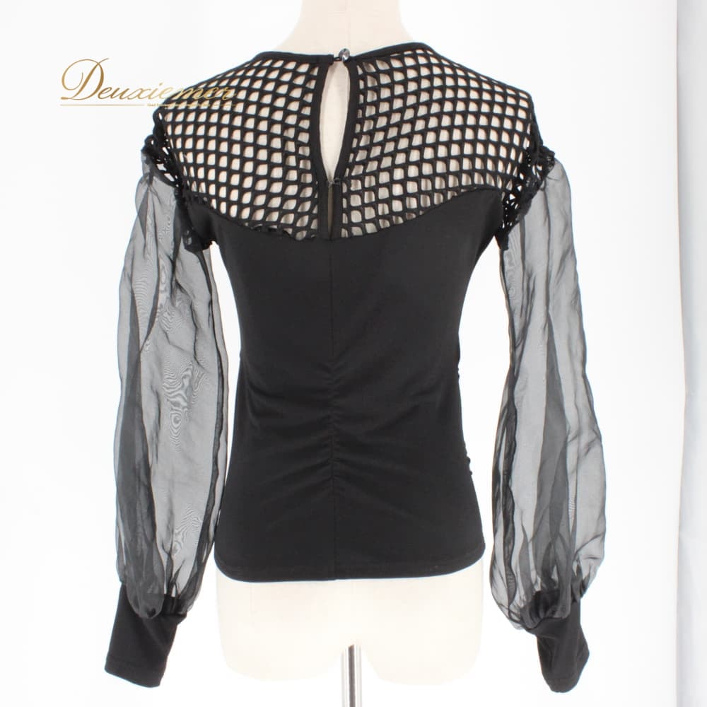 社交ダンス 衣装 create-sun クリエイトサン トップス ブラウス レッスンウェア ブラック系 黒 無地 上品 華やか エレガント レース 長袖 シンプル 透け感 練習着 フォーマル レディース オールシーズン ボールルームダンス ソシアルダンス