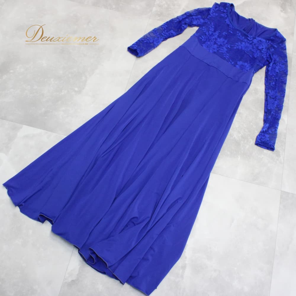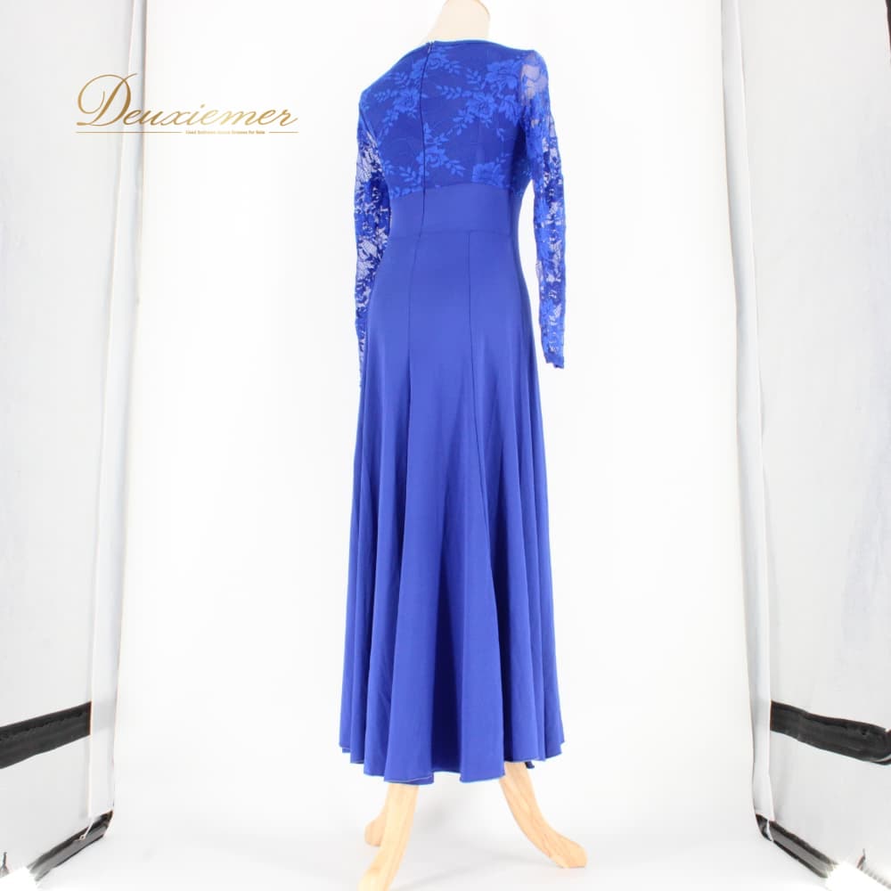 社交ダンス 衣装 ドレス ワンピース スタンダード ブルー系 青 レース 花柄 上品 華やか エレガント ダンスパーティー 長袖 パーティドレス ステージ衣装 発表会 レディース オールシーズン ボールルームダンス ソシアルダンス