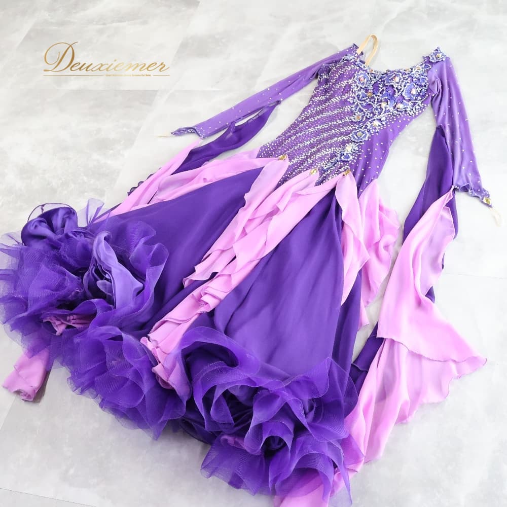 #衣装 #バレエ #バレエ衣装 #新体操 #新体操ウェア #レオタード #スカート付き #紫コーデ #大人可愛い #エレガント #華やか #発表会 #ステージ衣装 #ダンス #ダンス衣装 #背面ファスナー #伸縮性 #胸パッド #三枚重ねスカート #ENUTSU