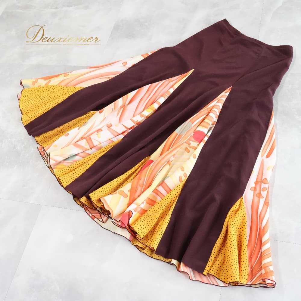 フラメンコ 衣装 HERMOSA IBERIA エルモサ イベリア ファルダ スカート ペチコート ブラウン系 ピンク系 イエロー系 オレンジ系 茶色 黄色 オレンジ 柄 模様 舞台 ダンス パーティ 発表会 軽い 薄い レディース ひらひら 舞踊用 ステージ衣装 パーティー衣装 エレガント