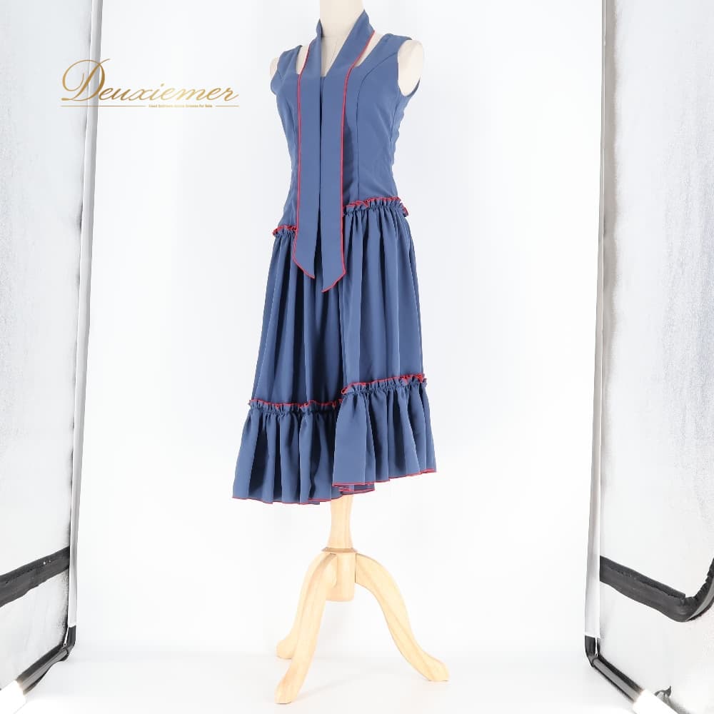 フラメンコ 衣装 ワンピース ドレス レッド系 ネイビー系 ブルー系 紺 赤 無地 ボウタイ 重ね着 ダンス パーティ 発表会 ノースリーブ ダンス衣装 発表会衣装 舞台衣装 演奏会衣装 パーティー衣装
