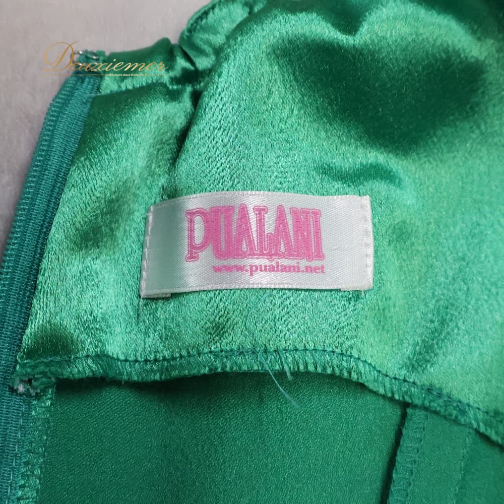 フラダンス 衣装 PUALANI プアラニ ワンピース ドレス グリーン系 ワンカラー ワンショルダー アシンメトリー 無地 光沢感 華やか 鮮やか 明るい きれい 上品 おしゃれ かわいい 緑 ハワイアン アロハ フラ ダンス レッスン 練習 フラダンス衣装