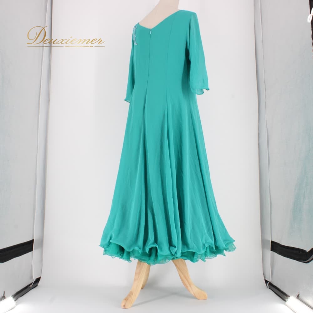 社交ダンス 衣装 U:NA ユーナ ドレス ワンピース スタンダード グリーン系 緑 無地 ラインストーン 上品 華やか エレガント レッスンウェア レディース オールシーズン ダンスパーティー パーティドレス ステージ衣装 発表会 ボールルームダンス ソシアルダンス