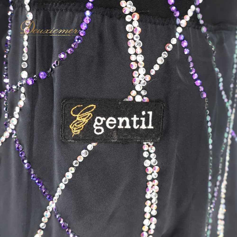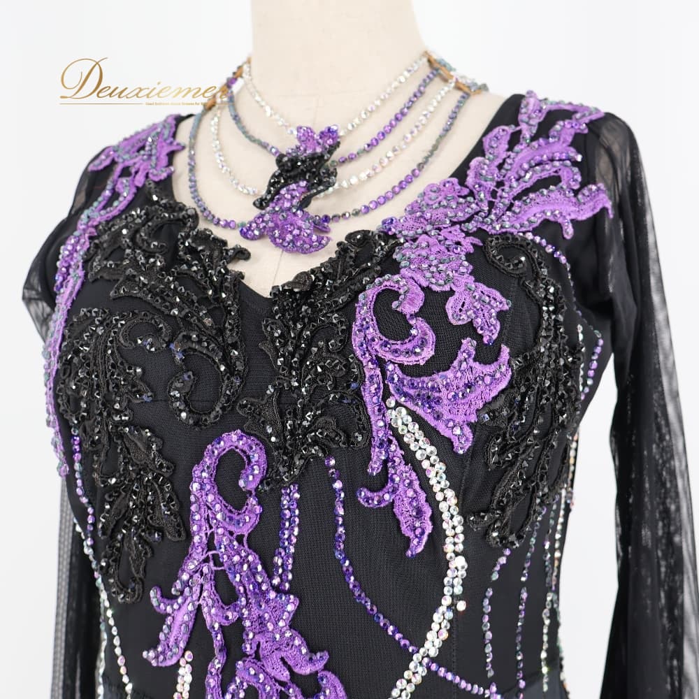 社交ダンス 衣装 gentil ジャンティ ドレス ワンピース ブラック系 フロート 黒 紫 ラインストーン チョーカー レース 光沢 高級感 デモ 競技用 レオタード レディース 華やか ダンス衣装 ダンス用 ボリューム パープル系 シルバー系