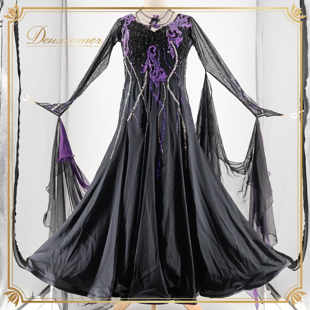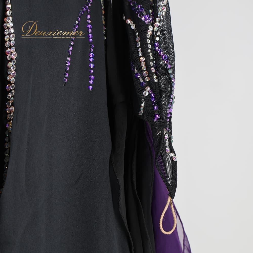 #gentil #ジャンティ #ドレス #パーティードレス #ブラック #パープル #ダンス #ステージ衣装 #競技用 #大人っぽい #高級感 #光沢スカート #2枚重ね #シンプル #背面ファスナー #レオタード仕様 #胸パッド #伸縮性 #Lサイズ #シック #ENUTSU