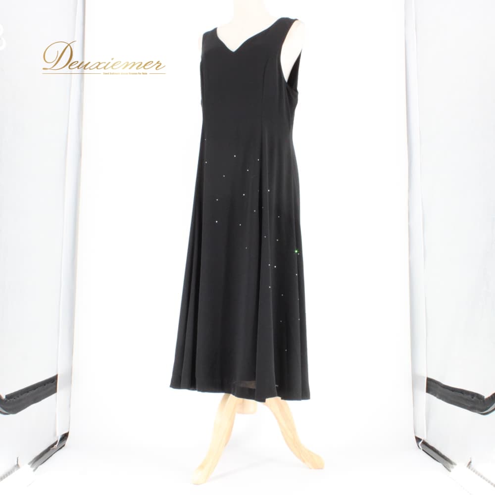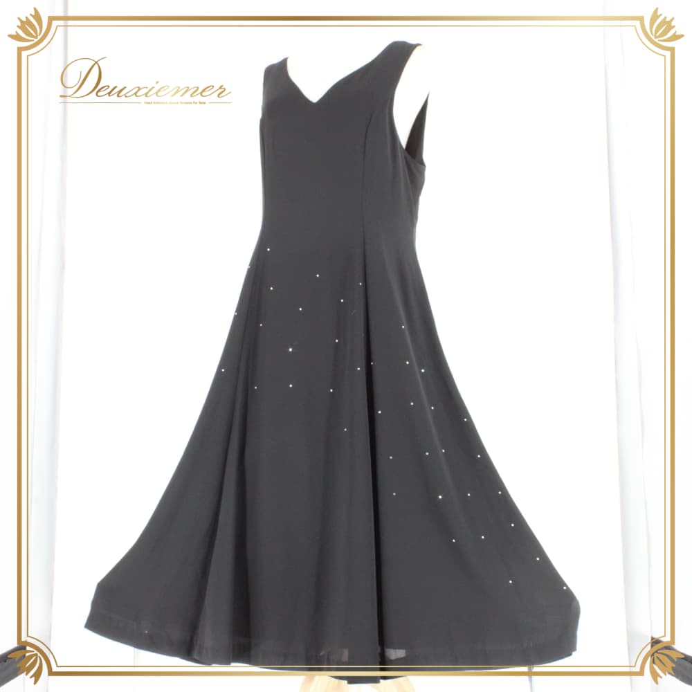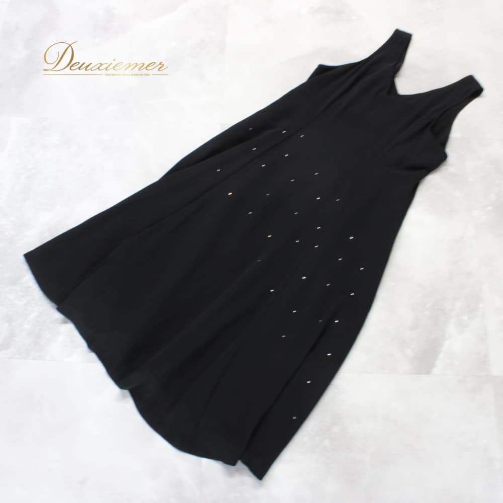#Sanline #サンリーヌ #ブラックドレス #モノトーン #ラインストーン #キラキラ #パーティードレス #フォーマル #上品 #エレガント #背面ファスナー #ノーストレッチ #伸縮なし #胸パッドなし #肩パッドなし #13R #大きめサイズ #レディースファッション #ブラックコーデ #ENUTSU
