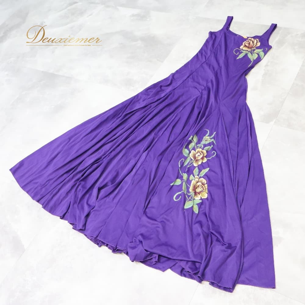 フラメンコ 衣装 CANDELA ドレス ワンピース パープル系 紫 花柄 レッスンウェア 練習 ダンス パーティ 発表会 舞台衣装 発表会衣装 ダンス衣装 エレガント