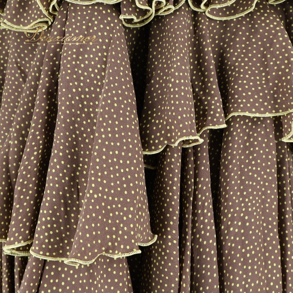 フラメンコ 衣装 RAQVEL ドレス ワンピース ブラウン系 イエロー系 茶色 黄色 水玉 ドット ボランテ フリル かわいい おしゃれ 舞台衣装 発表会衣装 ダンス衣装 ステージ衣装