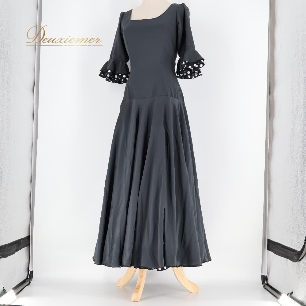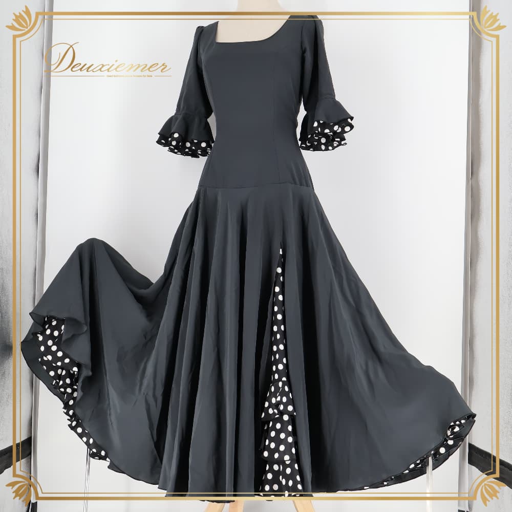 フラメンコ 衣装 ドレス ワンピース ブラック系 ホワイト系 グレイ系 グリーン系 黒 グレー 緑 水玉 ドット 無地 お洒落 ダンス パーティ 発表会 舞台衣装 発表会衣装 ダンス衣装 かわいい 大人