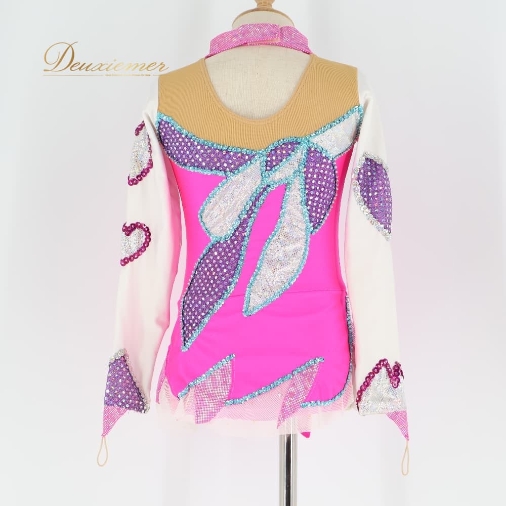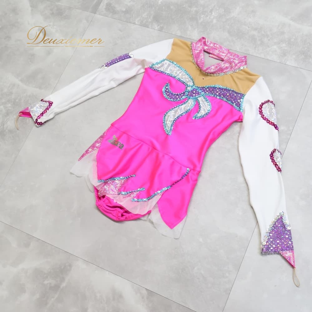 新体操 衣装 Jacpa ジャクパ レオタード ホワイト系 ピンク系 白 ピンク スパンコール 競技 本番 発表会 ジュニア キッズ 子供 体操 女の子 競技用 発表会用 スパンコール きらきら