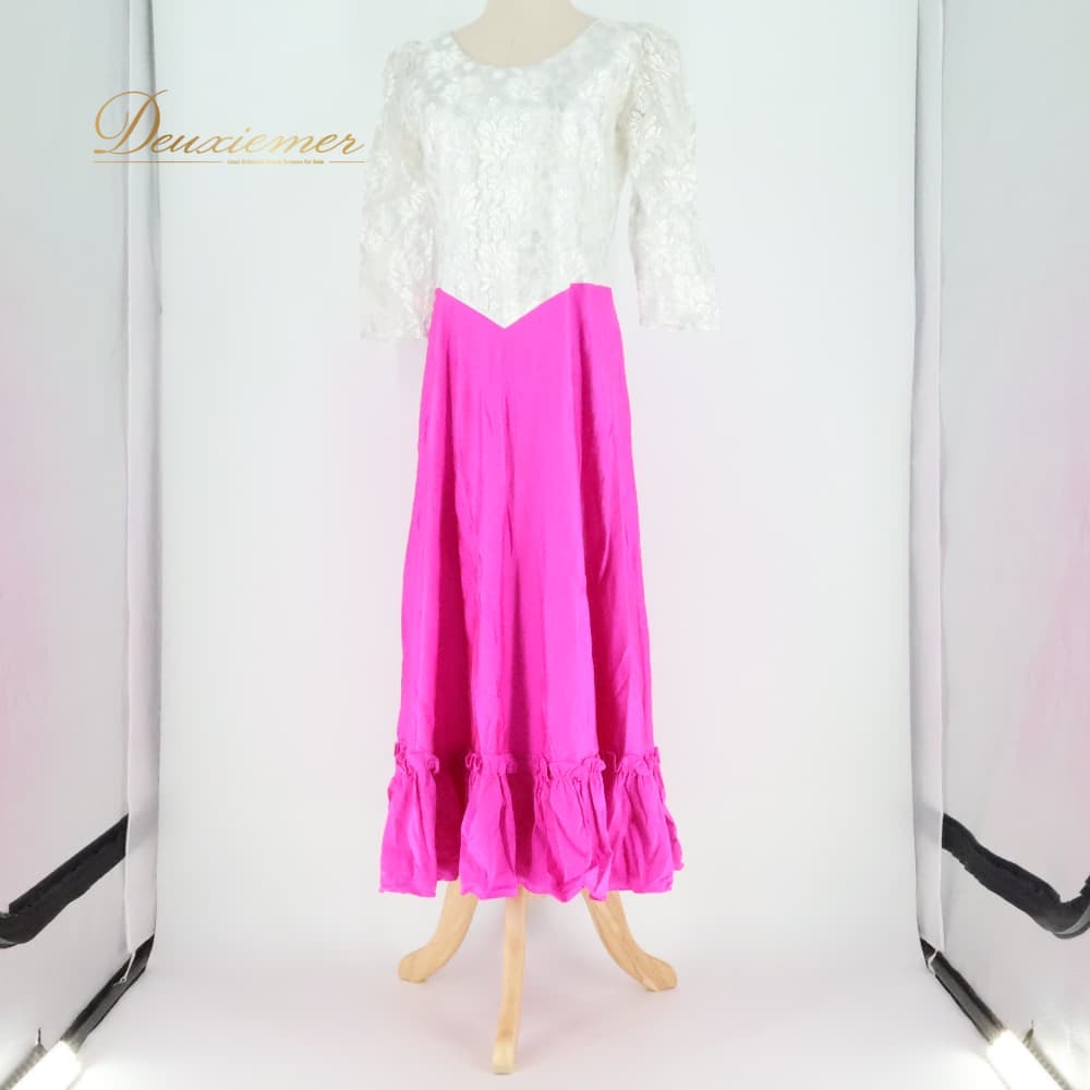 #MENEHUNE #PLANTETION #メネフネプランテーション #日本製 #レース #ラメ入り #上品 #鮮やかピンク #ピンクコーデ #ワンピース #ドレス #背面ファスナー #伸縮性なし #きれいめ #フォーマル #エレガント #レディースファッション #春夏スタイル #オケージョン #日本製ワンピース #ENUTSU