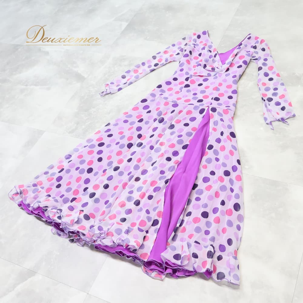フラメンコ 衣装 HERMOSA IBERIA エルモサ イベリア ドレス ワンピース ピンク系 パープル系 紫 ピンク 水玉 ドット 透け感 ポップ かわいい ダンス パーティ 発表会 ドット柄 水玉模様 ポップ柄 イベント衣装 舞台衣装