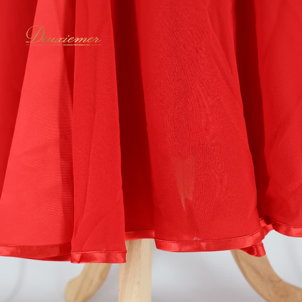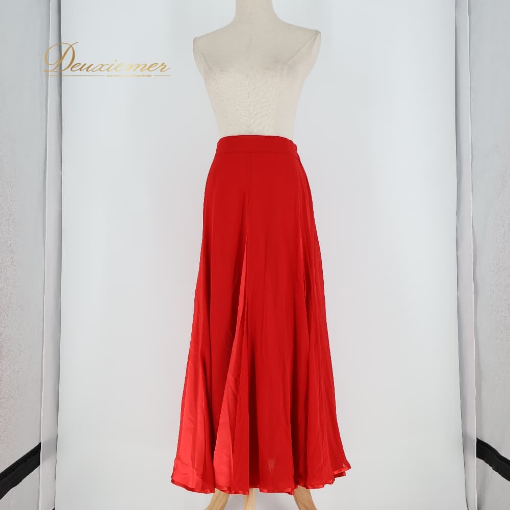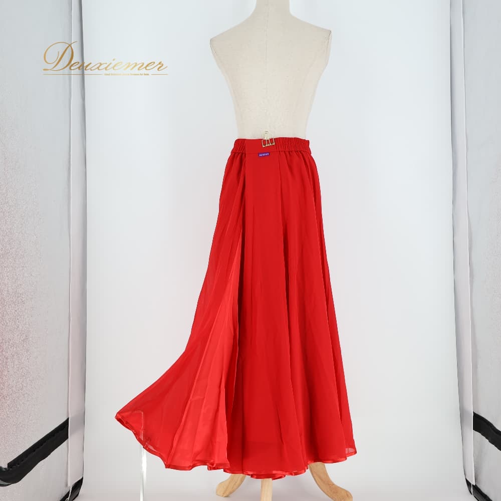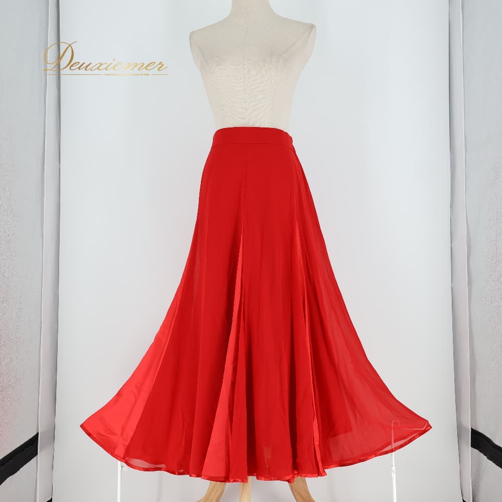 社交ダンス 衣装 Papillon パピヨン スカート レッスンウェア レッド系 無地 シンプル 練習 レッスン 赤 鮮やか 光沢 透け感 上品 かわいい ダンス衣装 イベント ステージ パーティー ダンスパーティー おしゃれ