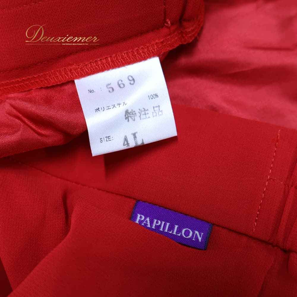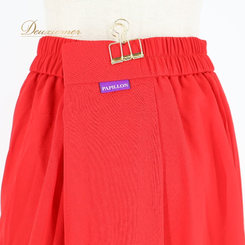 #Papillon #パピヨン #日本製 #レッド #鮮やかレッド #無地 #シンプルデザイン #エレガント #フォーマルコーデ #きれいめ #普段使い #背面ファスナー #ウエストゴム #伸縮性あり #4Lサイズ #大きいサイズ #ポリエステル100 #おしゃれ #スタイルアップ #ENUTSU