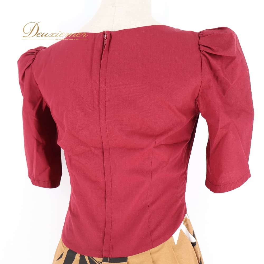 フラダンス 衣装 ALOHA STANDARDS アロハスタンダード ワンピース ドレス ブラウン系 日本製 ティアレ柄 モンステラ柄 ハワイアンプリント アロハ フラ ダンス レッスン 練習 あずき色 茶 パフスリーブ 華やか 鮮やか おしゃれ 上品 大人っぽい ブラック系 ホワイト系 ベージュ系 レッド系