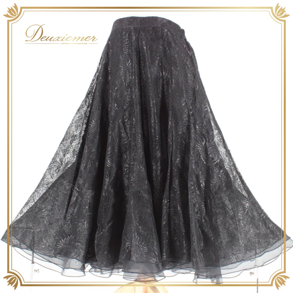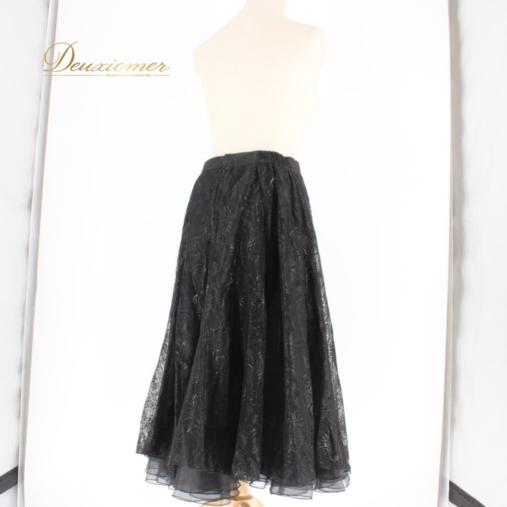 社交ダンス 衣装 Sanline サンリーヌ スカート レッスンウェア ブラック系 黒 キラキラ フォーマル レース 練習着 上品 大人っぽい きれいめ 華やか エレガント ステージ衣装 発表会 シック レディース オールシーズン ボールルームダンス ソシアルダンス スカート単品 ダンス フレアスカート 刺繍柄 透け感 ラメ感 光沢感 パーティー ロング丈 ふんわり シルエット フォーマルドレス風 ボールルーム レッスン 練習 トレーニング イベント コンサート ブラックコーデ 大人可愛い クラシック