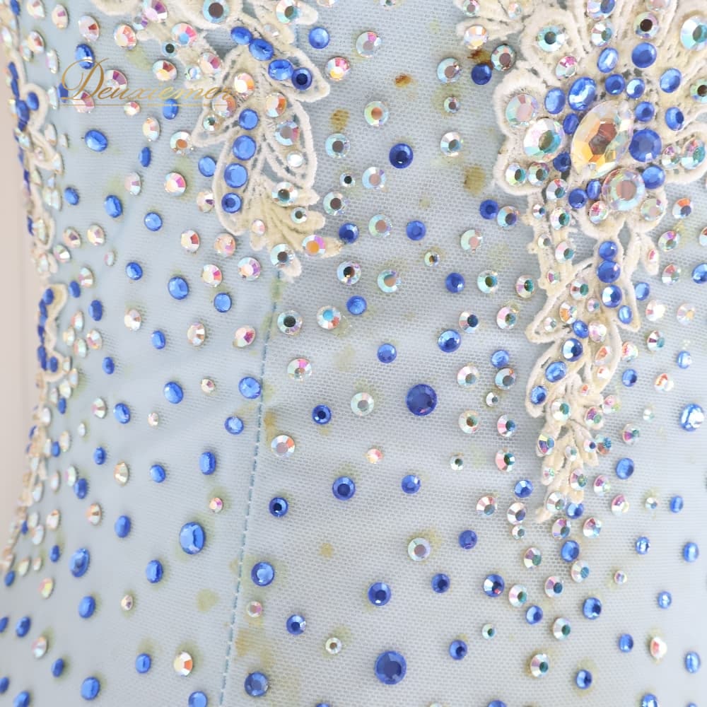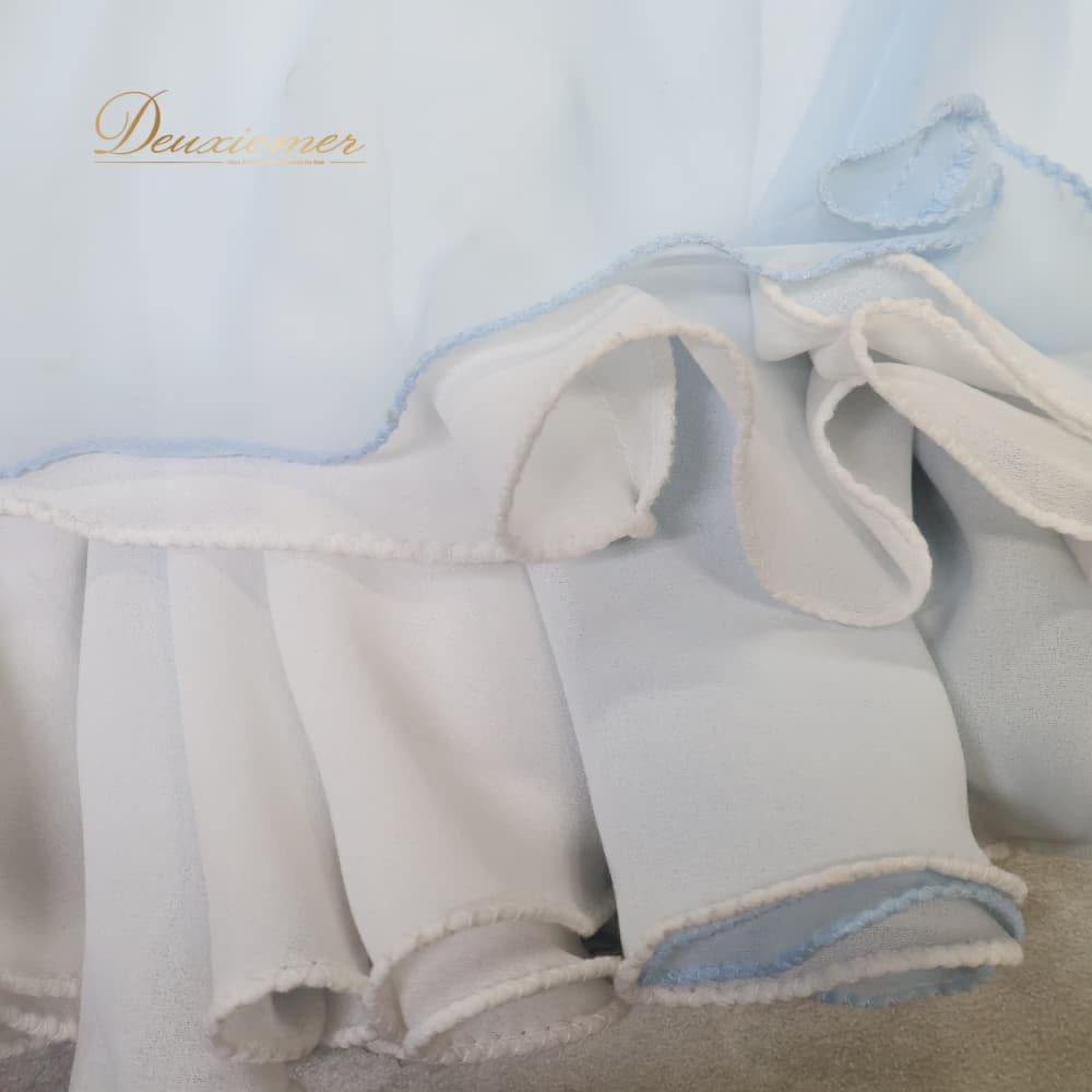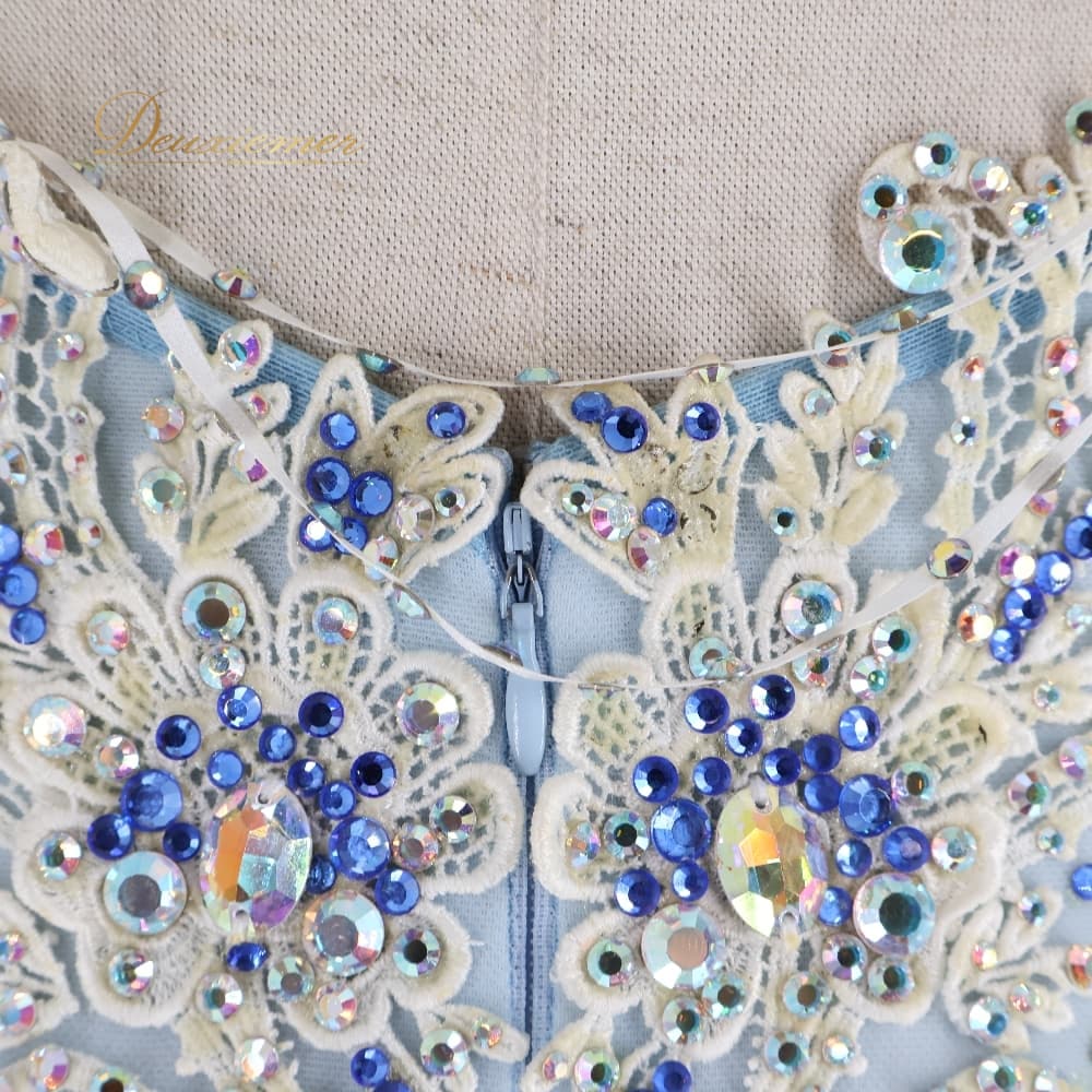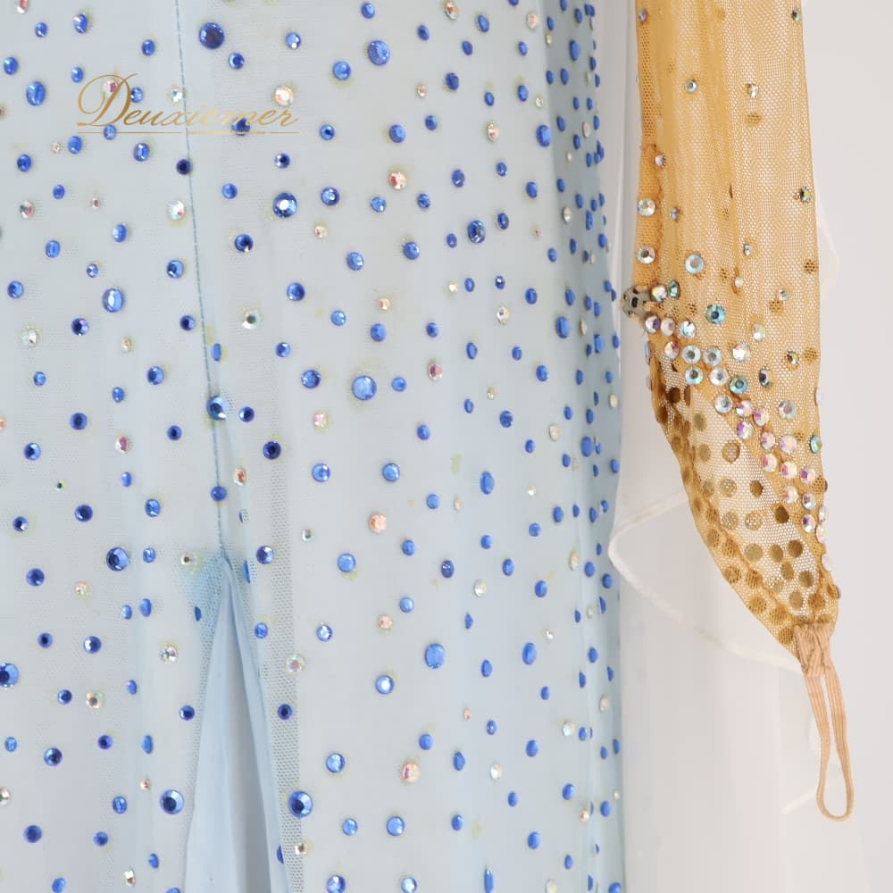 社交ダンス 衣装 HIROKO YAMAGUCHI ヒロコヤマグチ ドレス ワンピース スタンダード ホワイト系 ブルー系 水色 白 デモ 競技 ダンス パーティ 発表会 落ち感 明るい レース 上品 エレガント 大人 発表会衣装