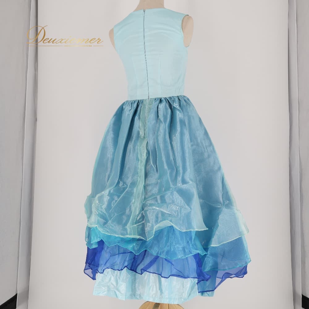 フラダンス 衣装 ワンピース ドレス ブルー系 チュール ノースリーブ 青 水色 ふんわり 透け感 さわやか 華やか 鮮やか かわいい おしゃれ 上品 ハワイアン アロハ フラ ダンス レッスン 練習 ハワイアンダンス フラダンス衣装 光沢感