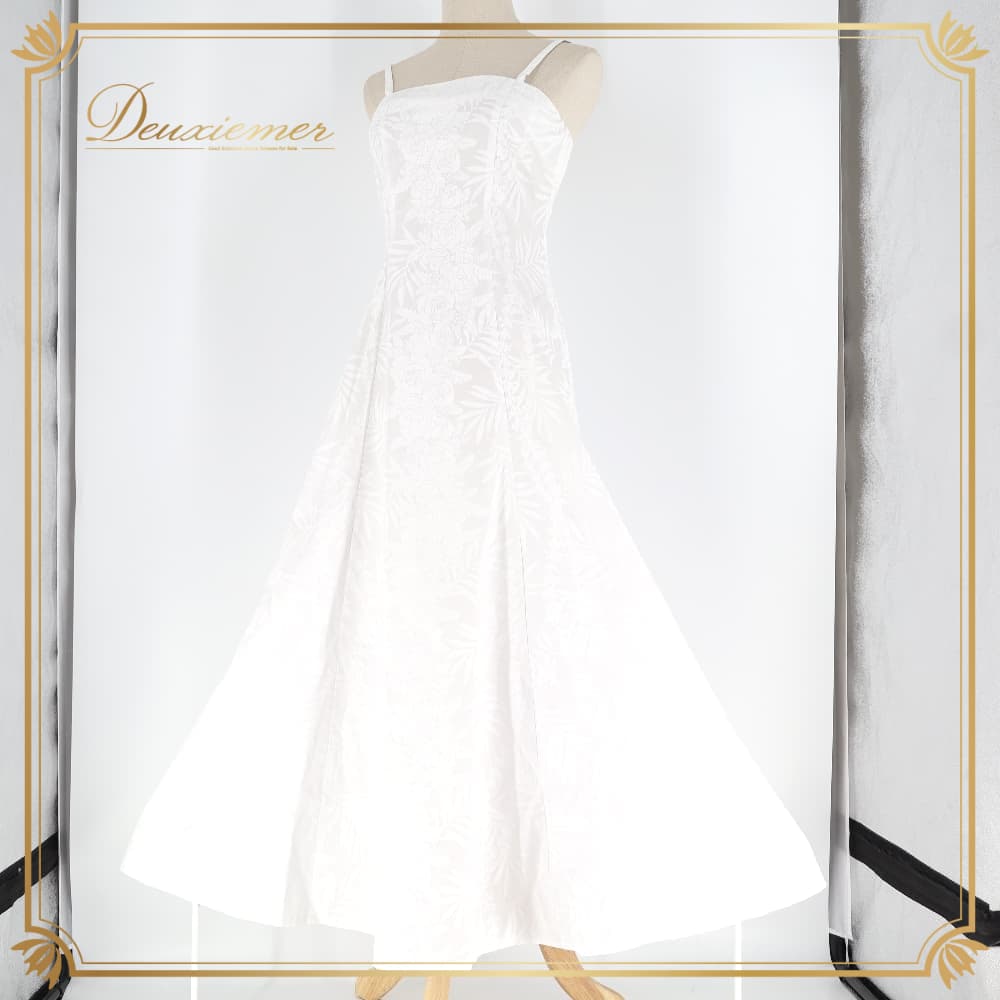 フラダンス 衣装 CC Fashions CCファッション ワンピース ドレス ホワイト系 ハワイ製 バラ ロケラニ柄 花柄 植物柄 ハワイアンプリント キャミソールドレス シンプル アロハ フラ ダンス レッスン 練習 華やか かわいい おしゃれ 上品 大人っぽい